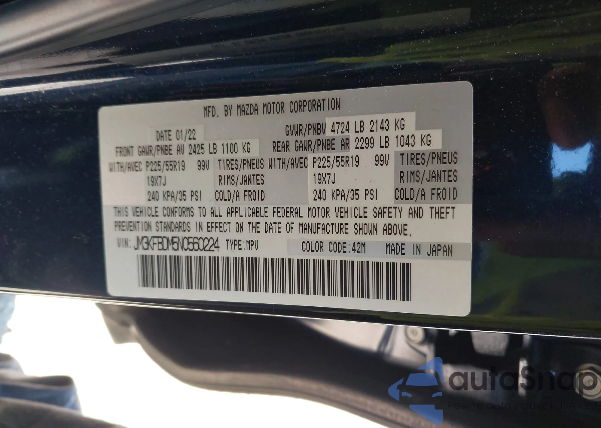 LOT: 43352399 VIN: JM3KFBDM5N0560224