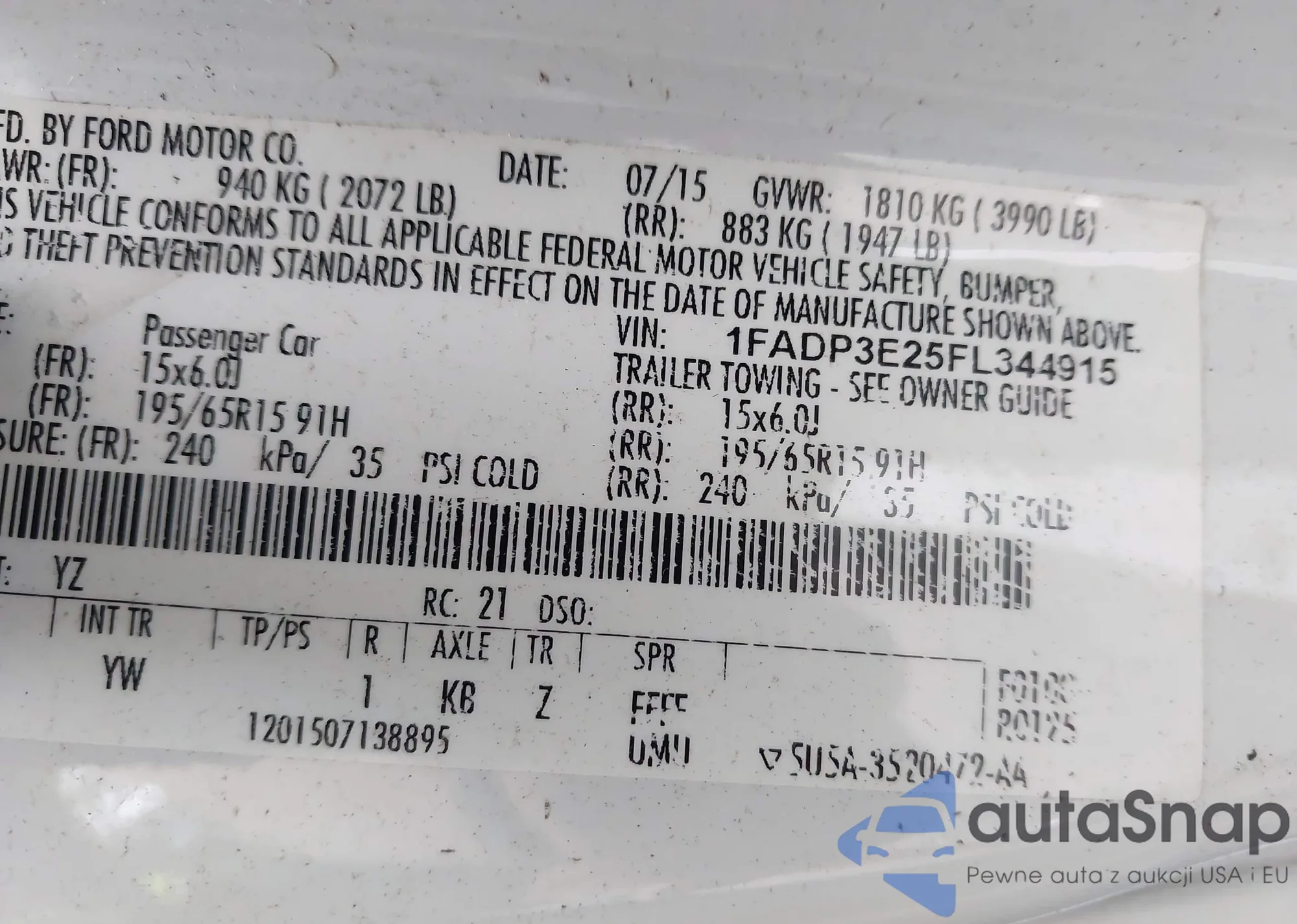 • VIN 1FADP3E25FL344915