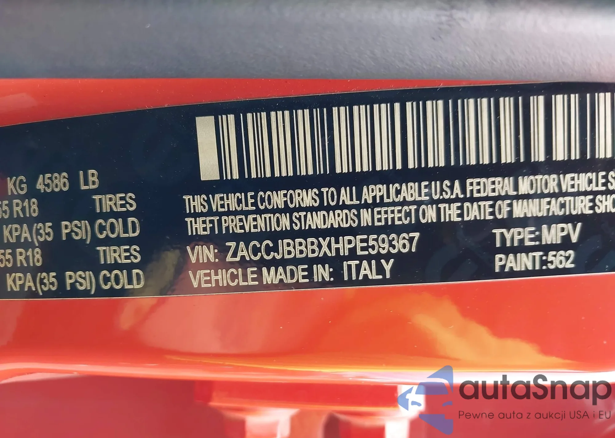 • VIN ZACCJBBBXHPE59367