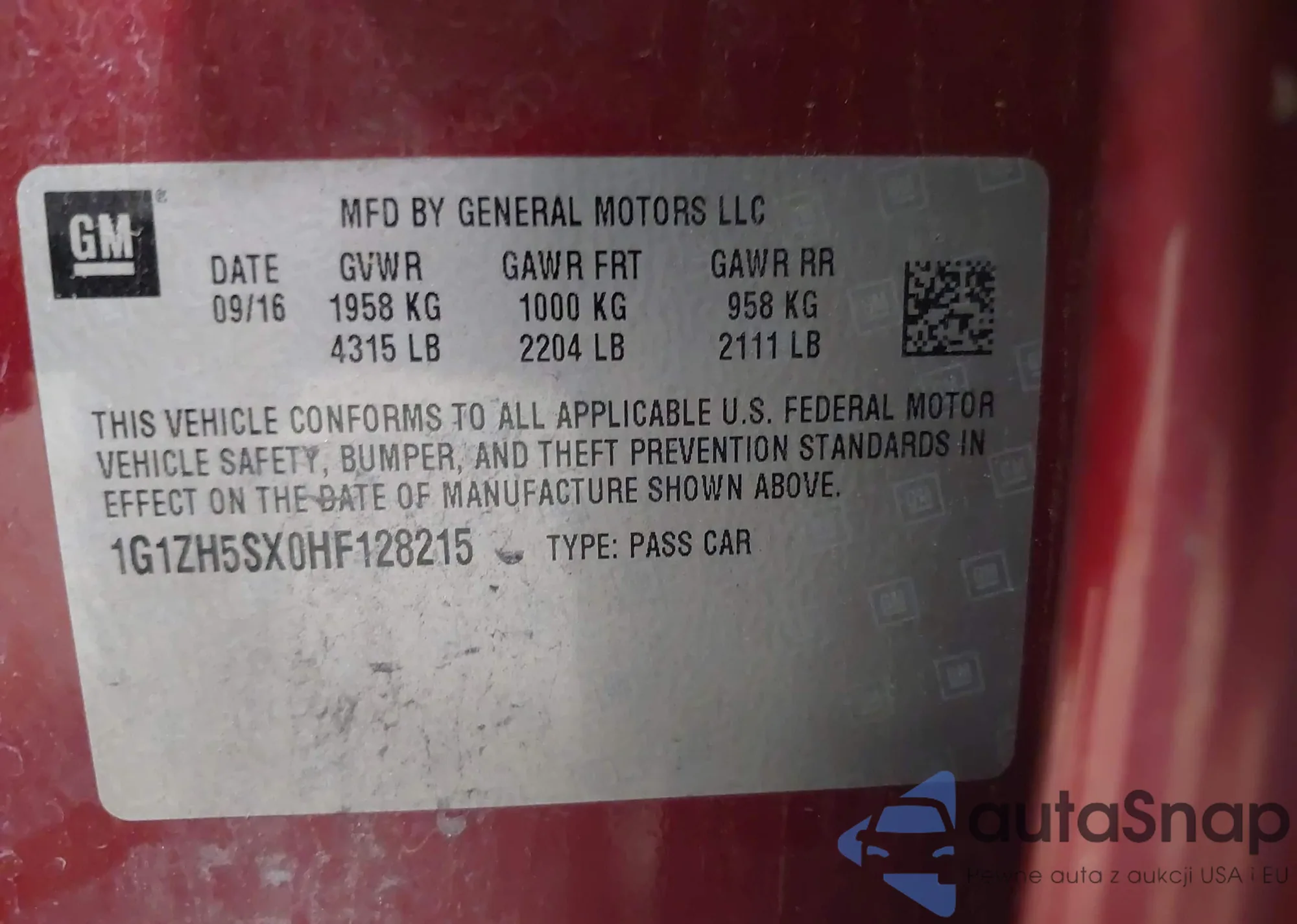 • VIN 1G1ZH5SX0HF128215