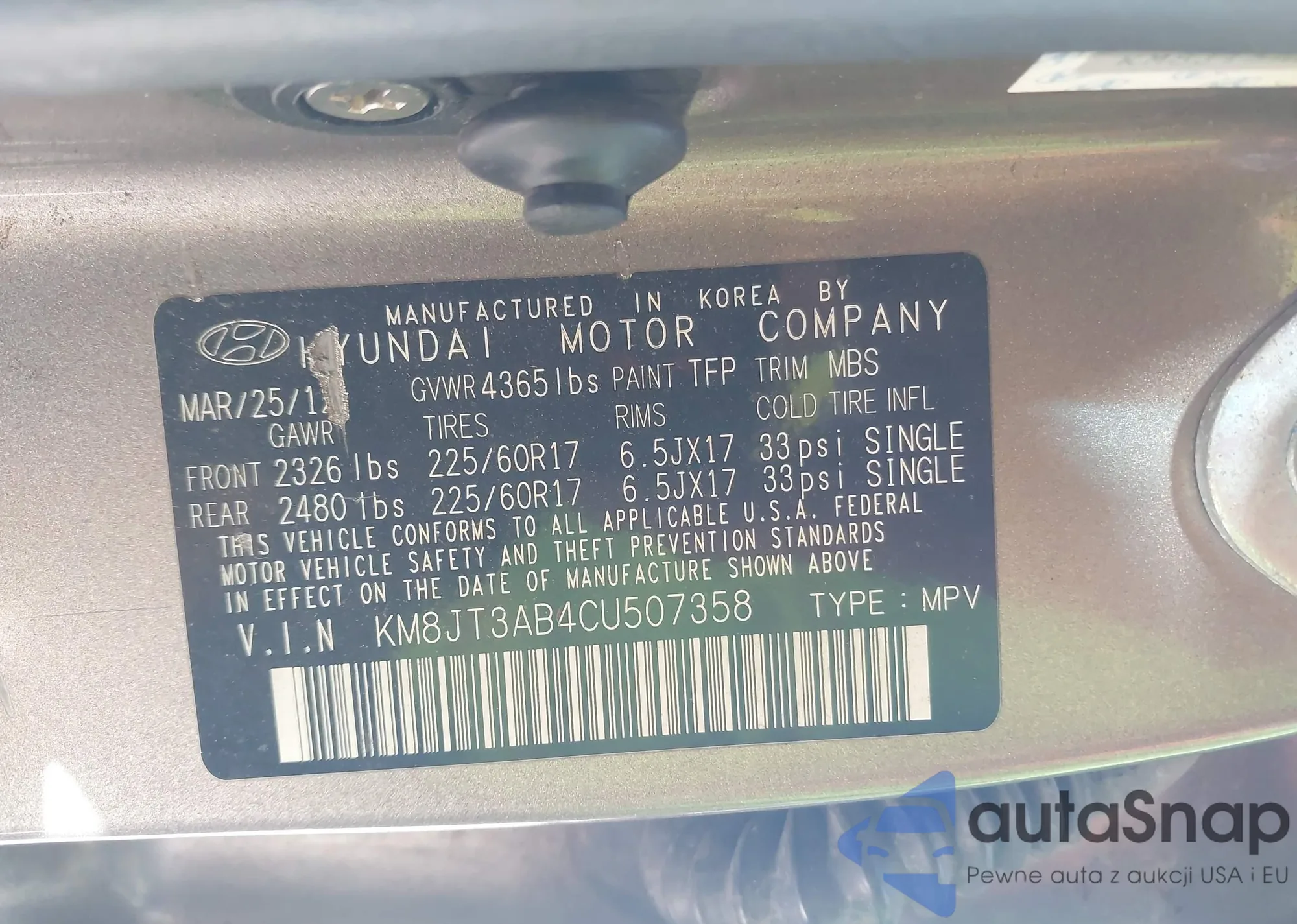 • VIN KM8JT3AB4CU507358