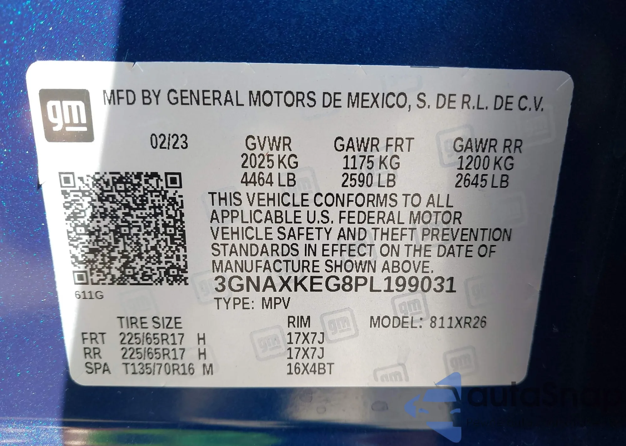 • VIN KL47LAE2XRB167189