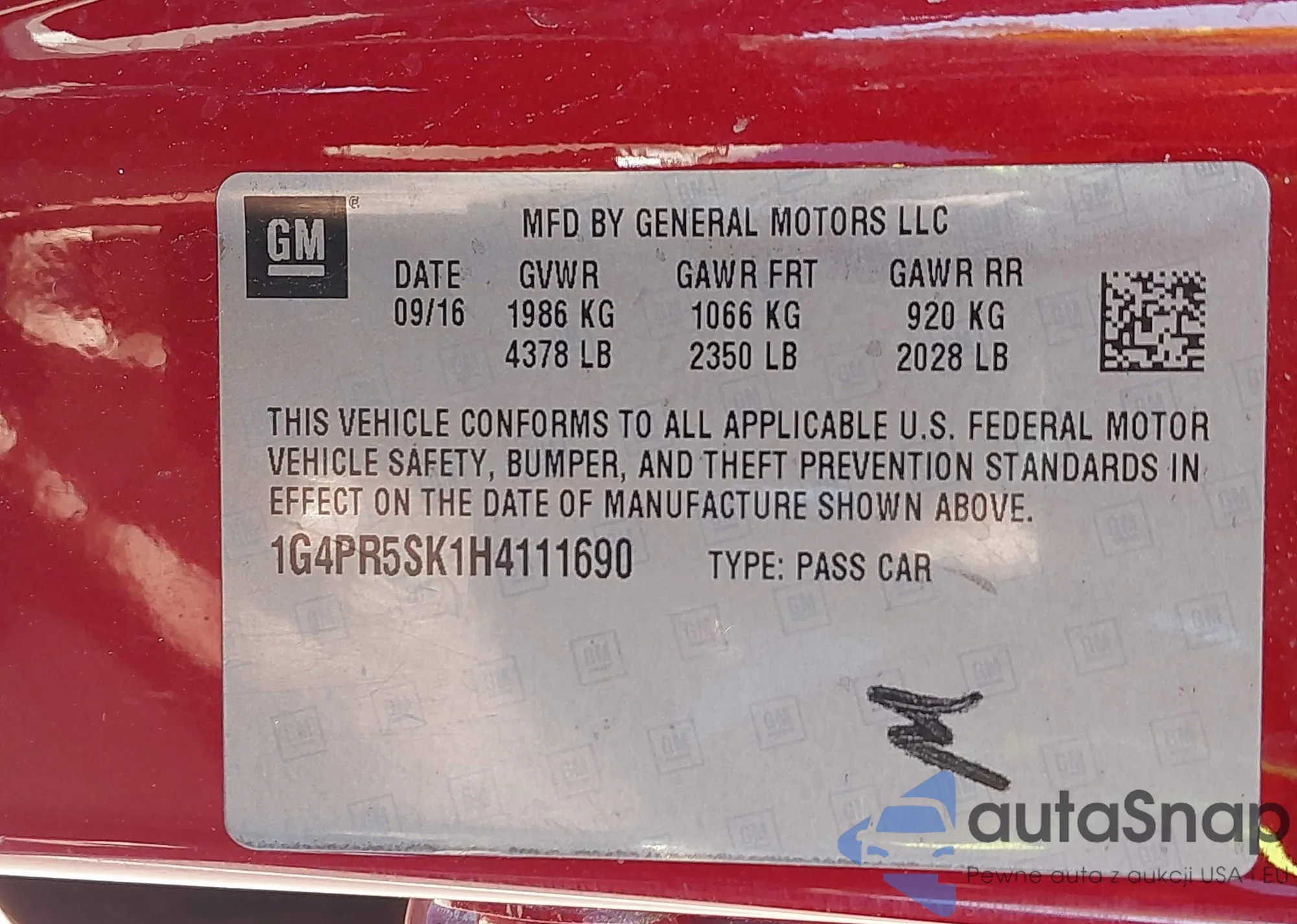LOT: 43330159 VIN: 1G4PR5SK1H4111690