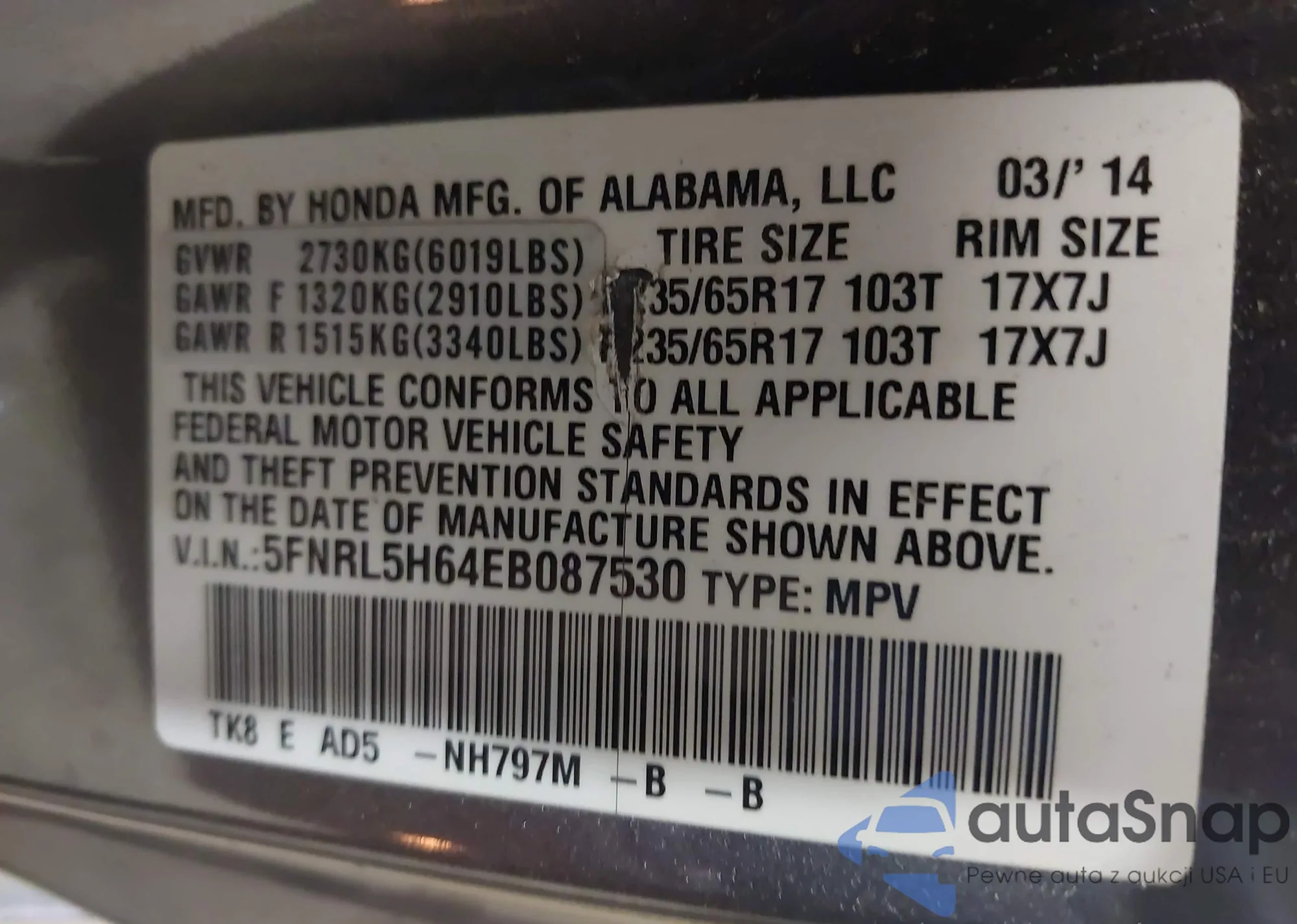 • VIN WAUKFAFL3DN034986
