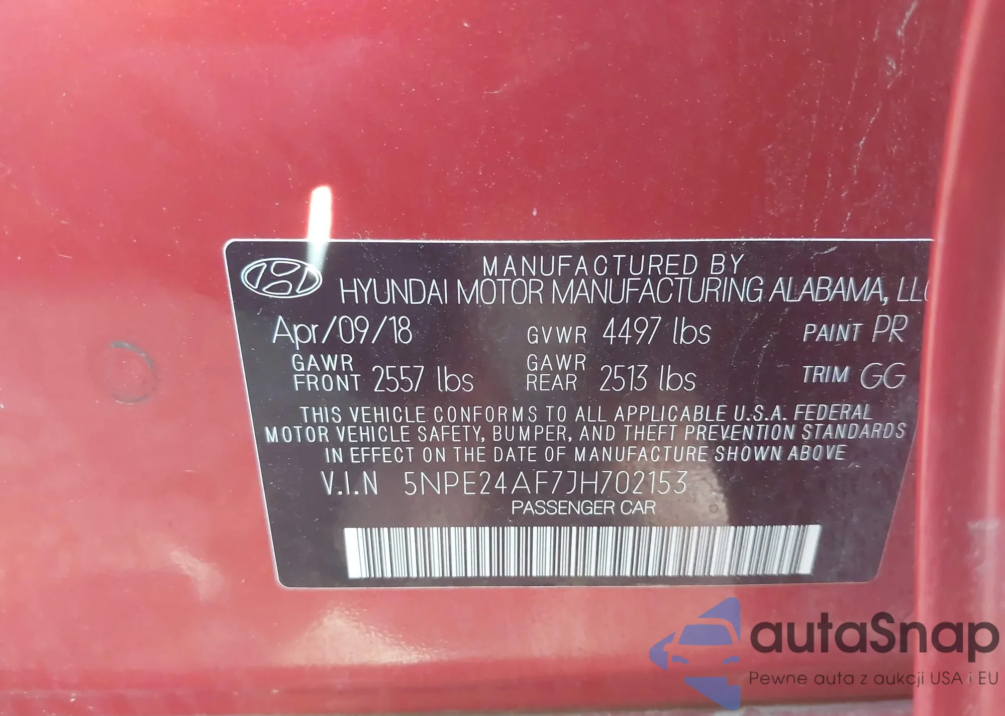• VIN 5NPE24AF7JH702153