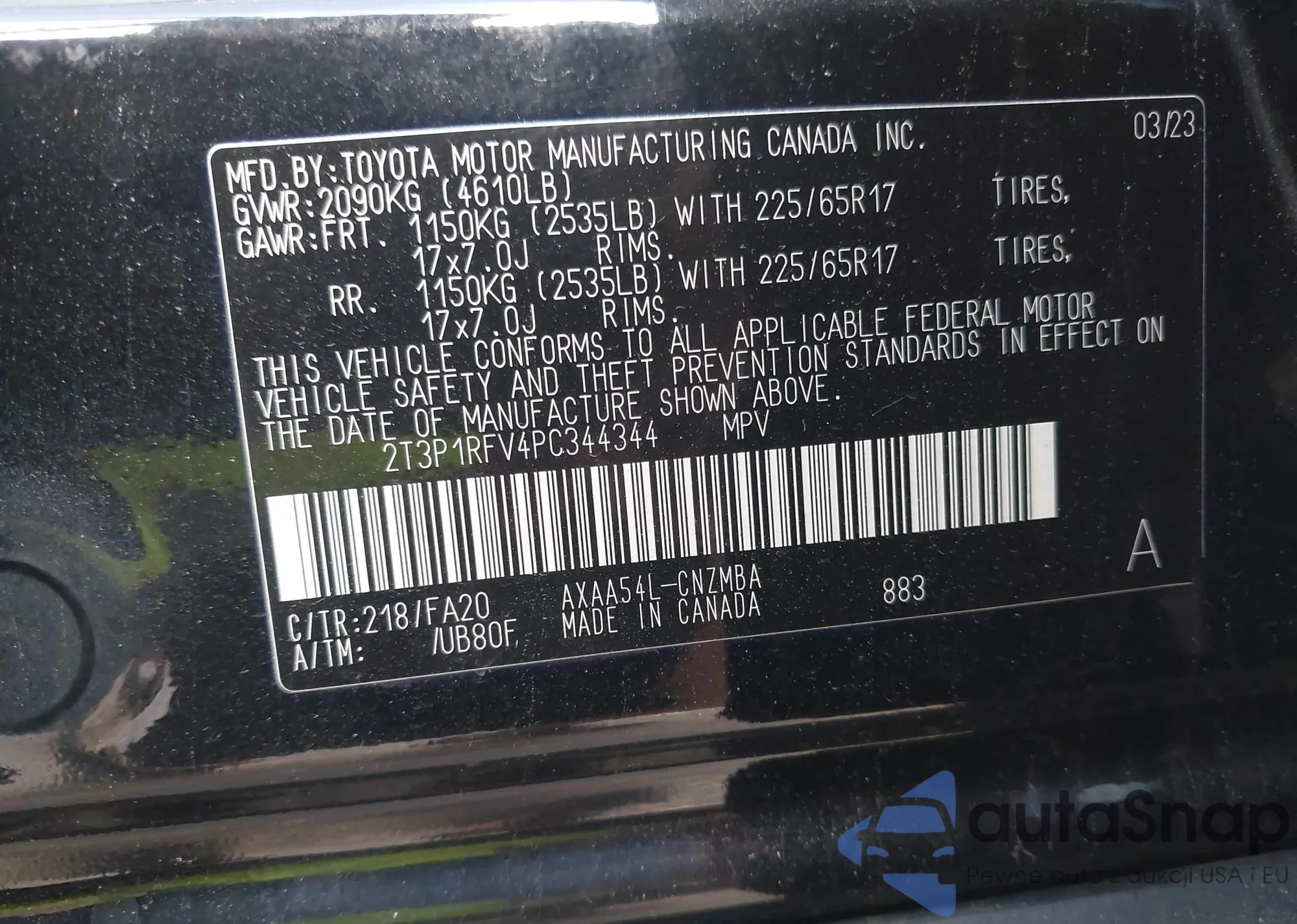 LOT: 43213166 VIN: 2T3P1RFV4PC344344