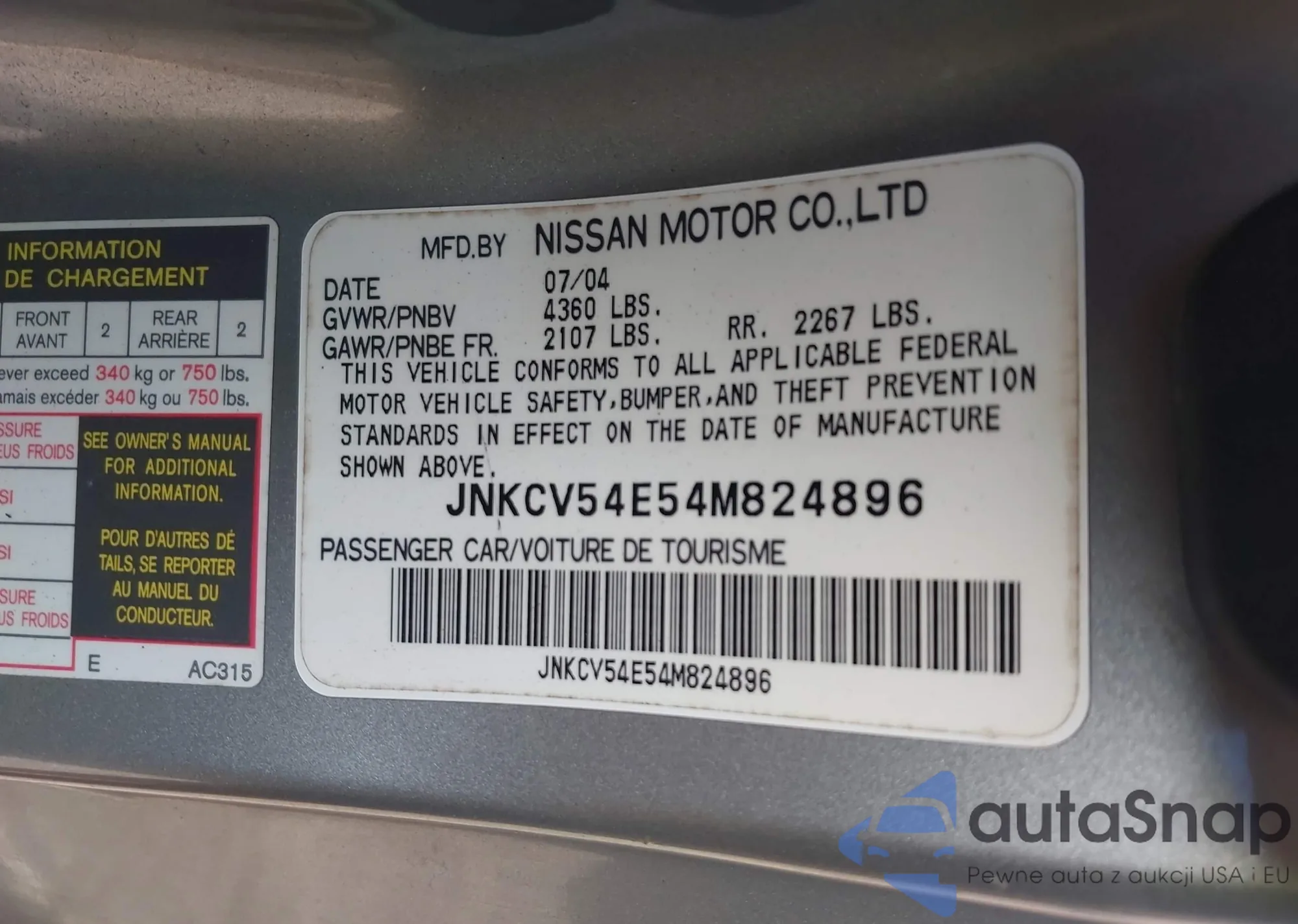 LOT: 43345763 VIN: JNKCV54E54M824896