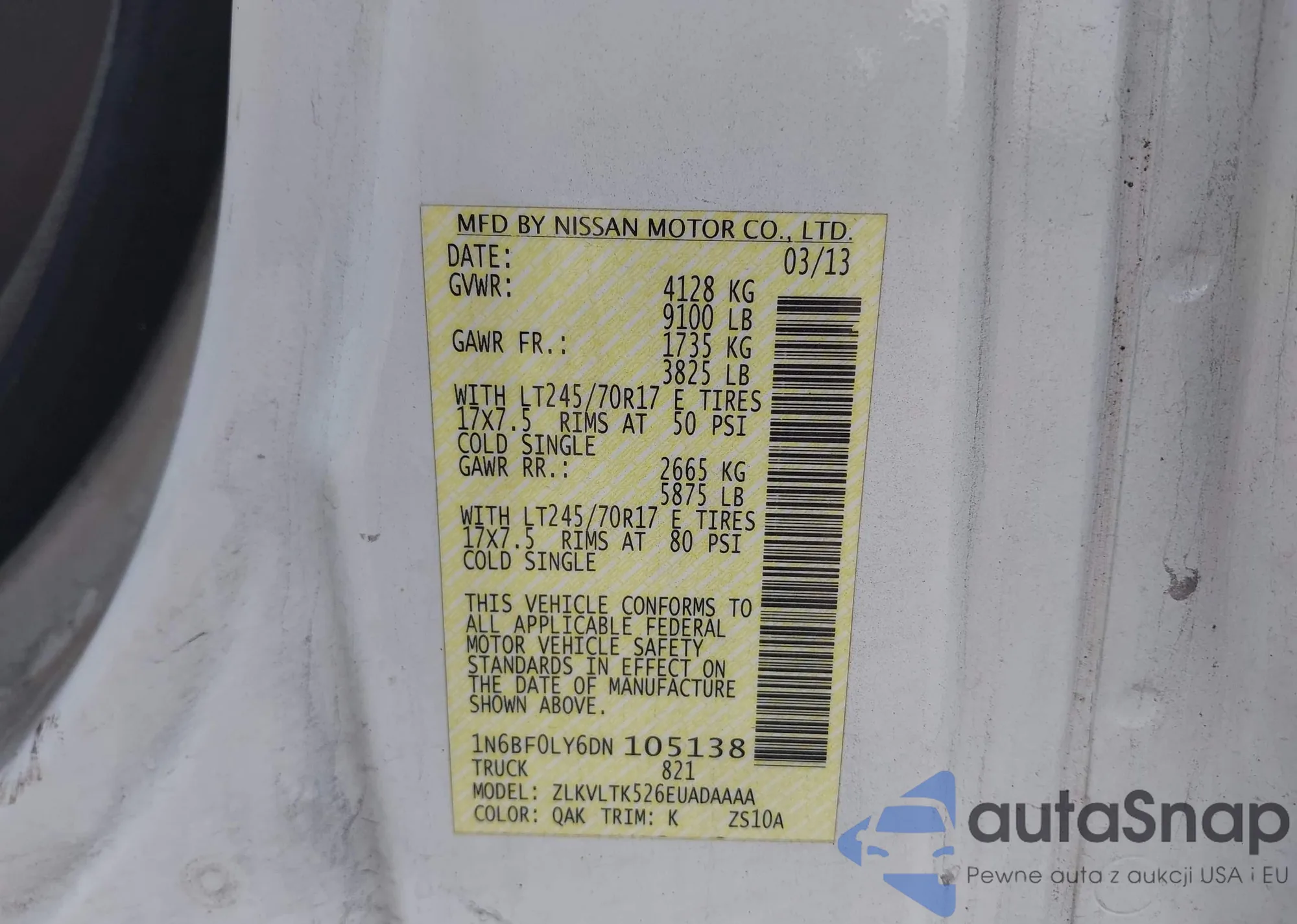 • VIN 1N6BF0LY6DN105138