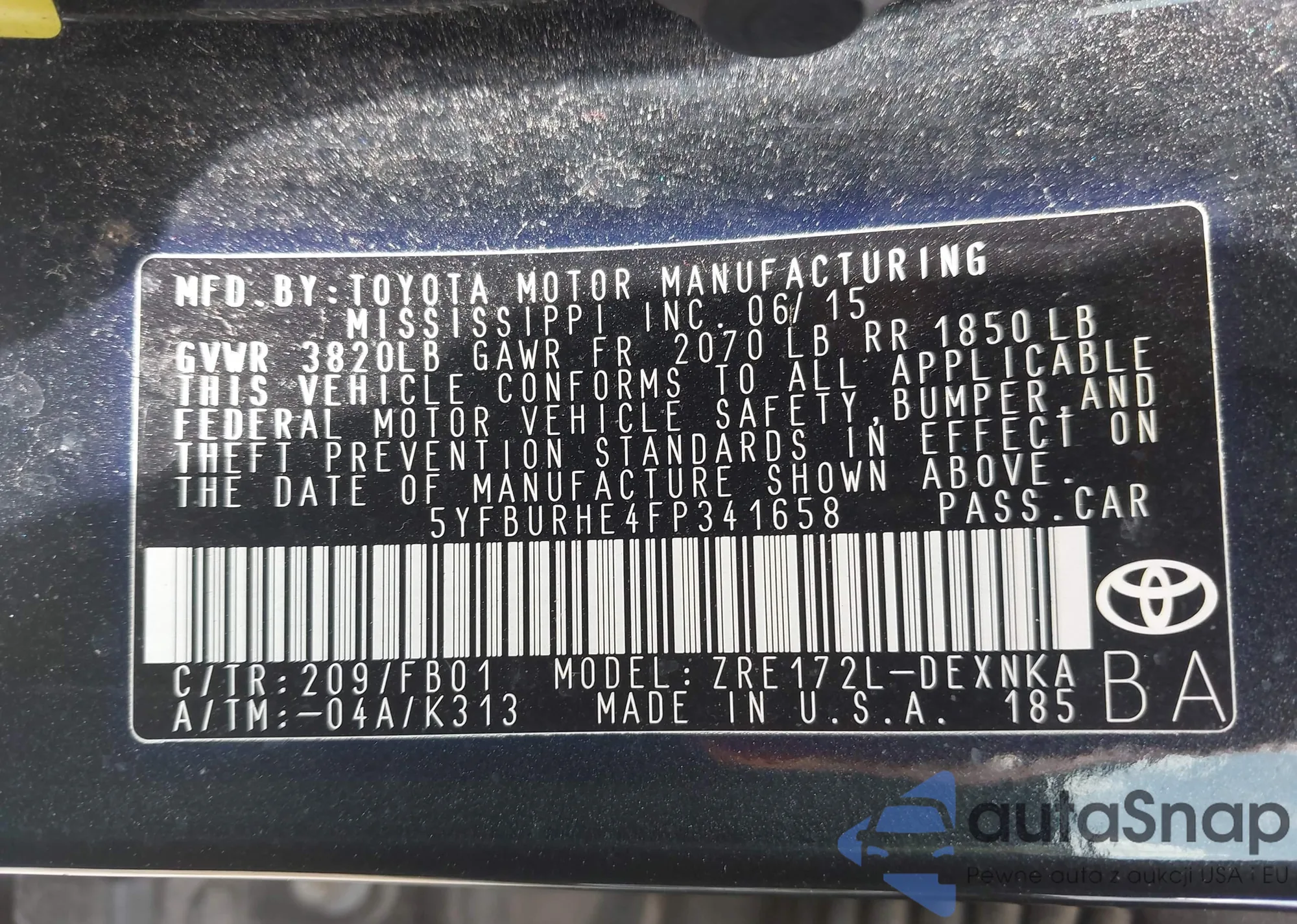 • VIN 5YFBURHE4FP341658