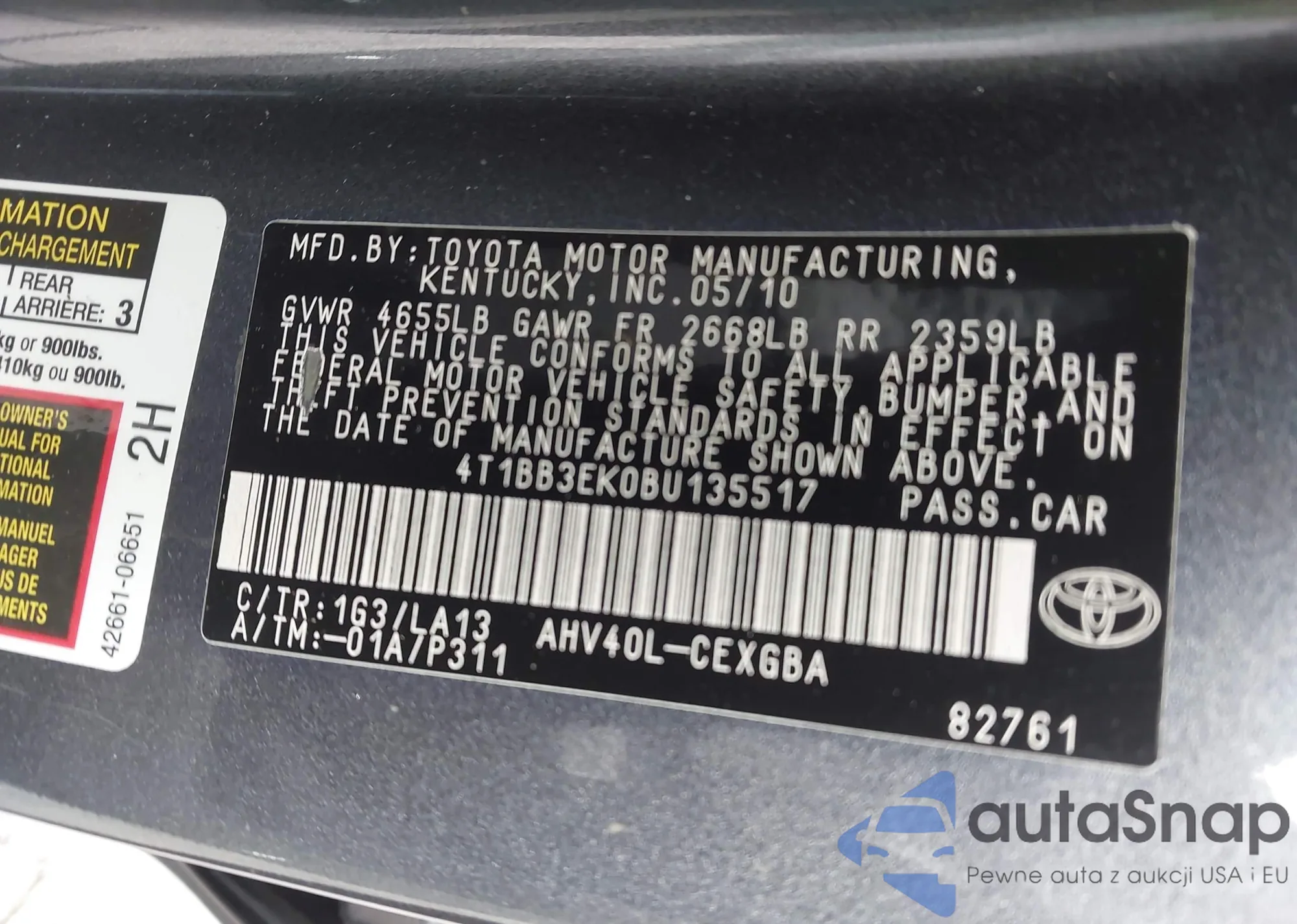 • VIN 4T1BB3EK0BU135517