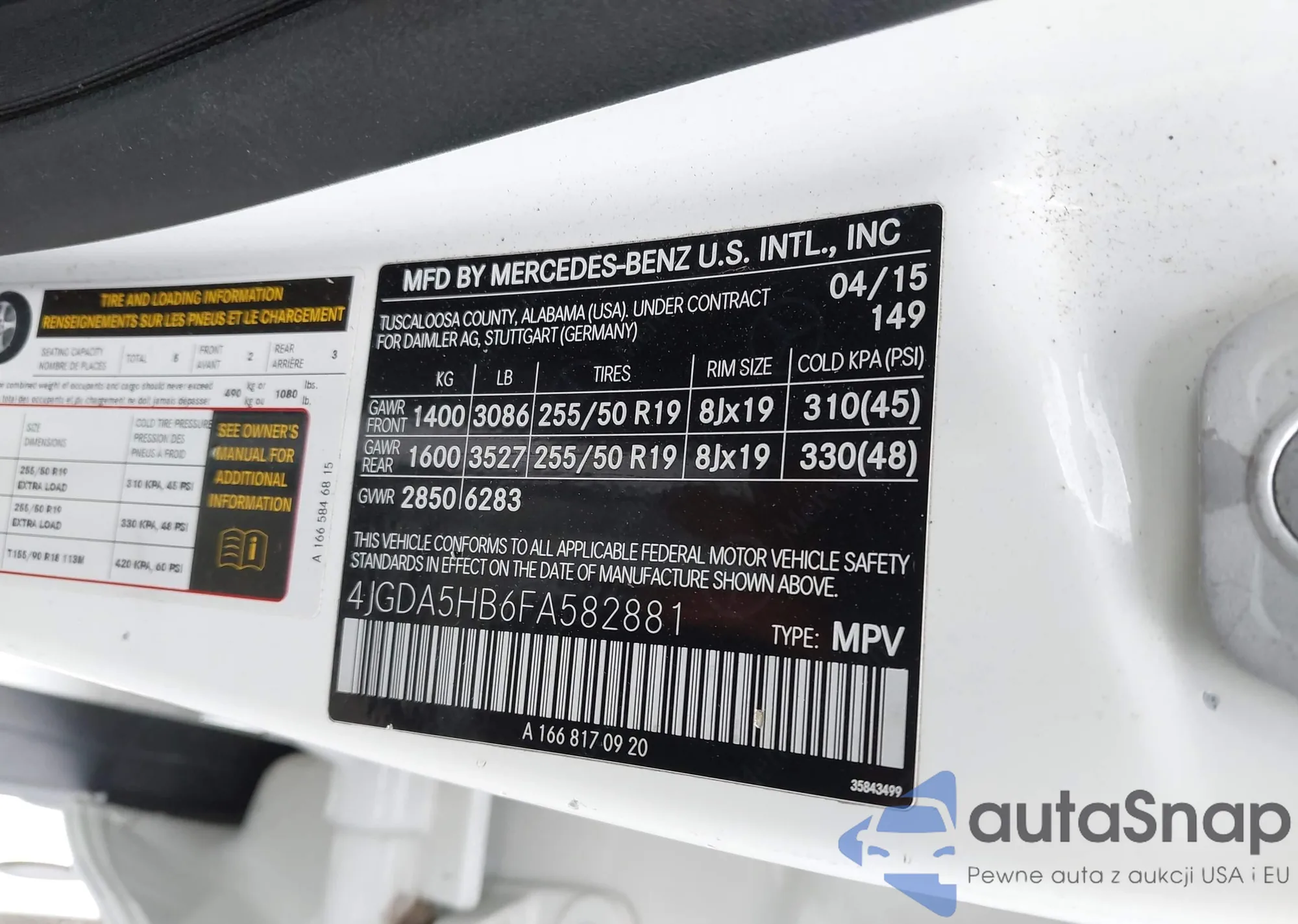 • VIN 4JGDA5HB6FA582881