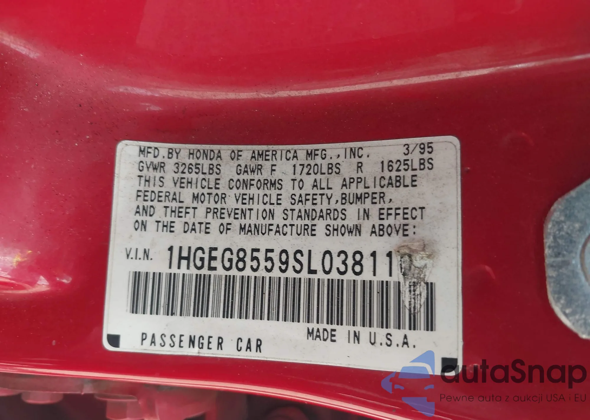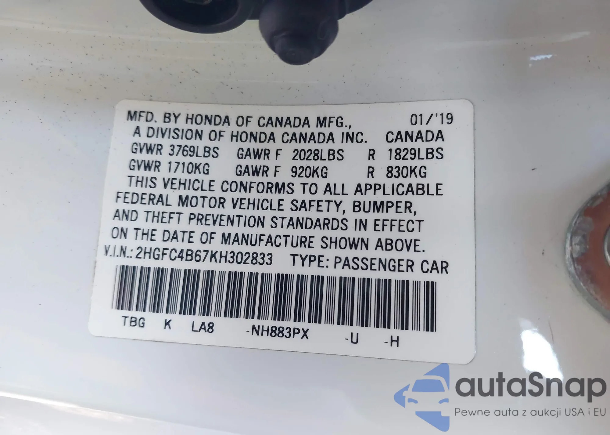 LOT: 43280387 VIN: JHMZF1D42GS000491