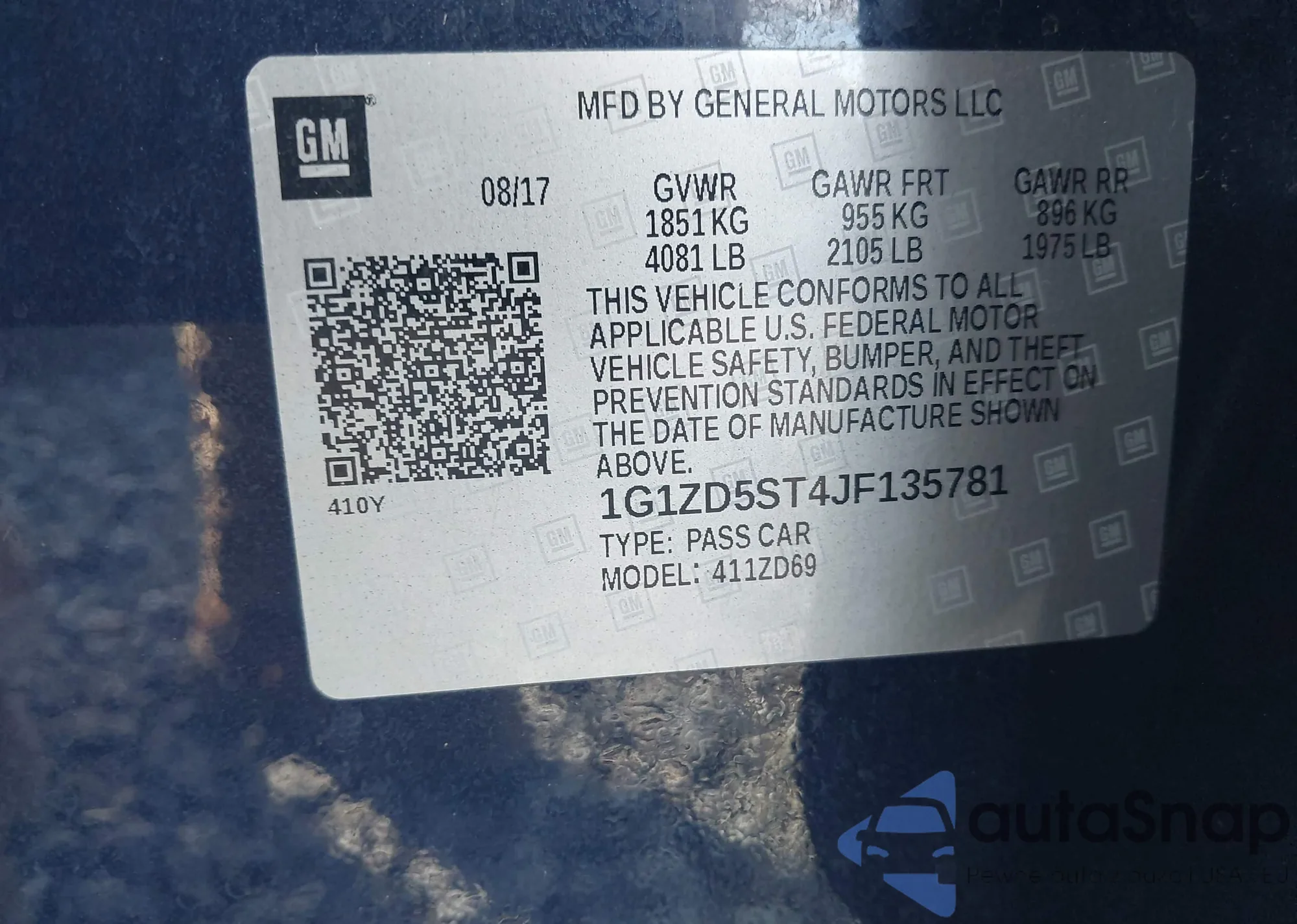 • VIN 1G1ZD5ST4JF135781