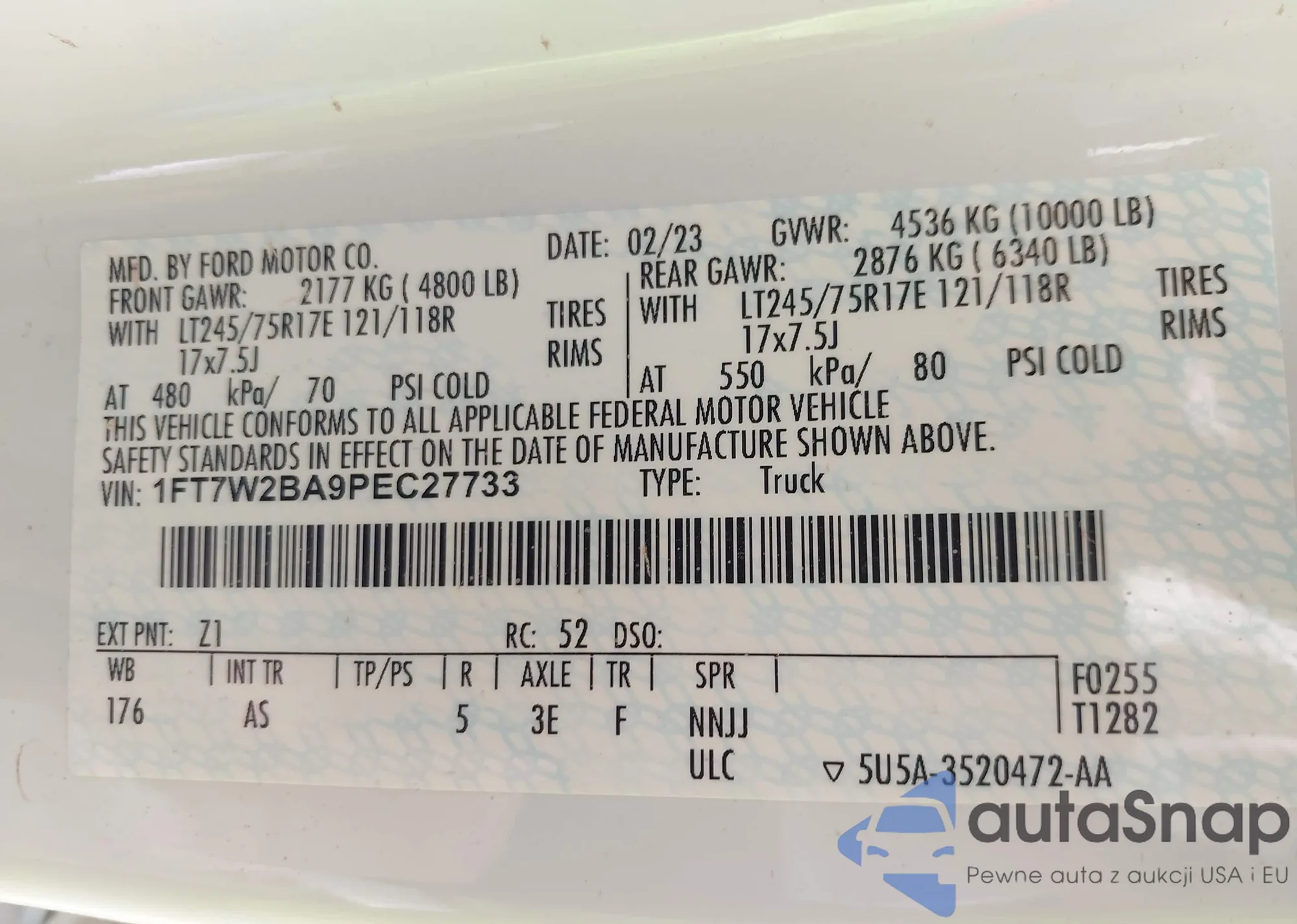 LOT: 43266440 VIN: 1FTPW14V77FB71358
