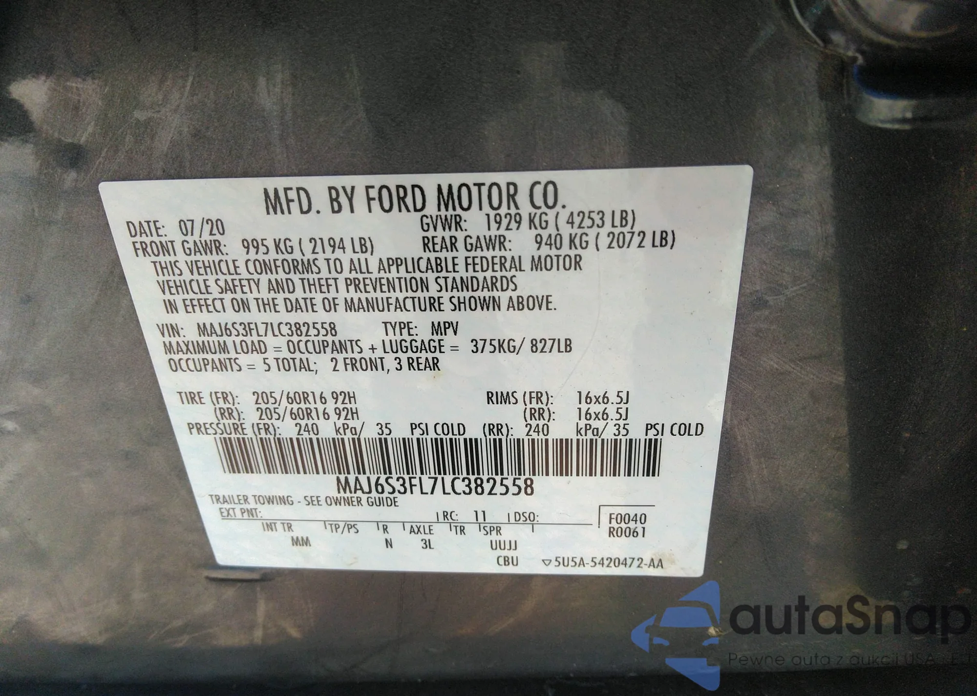 • VIN 1FMEE8BP6RLA58072