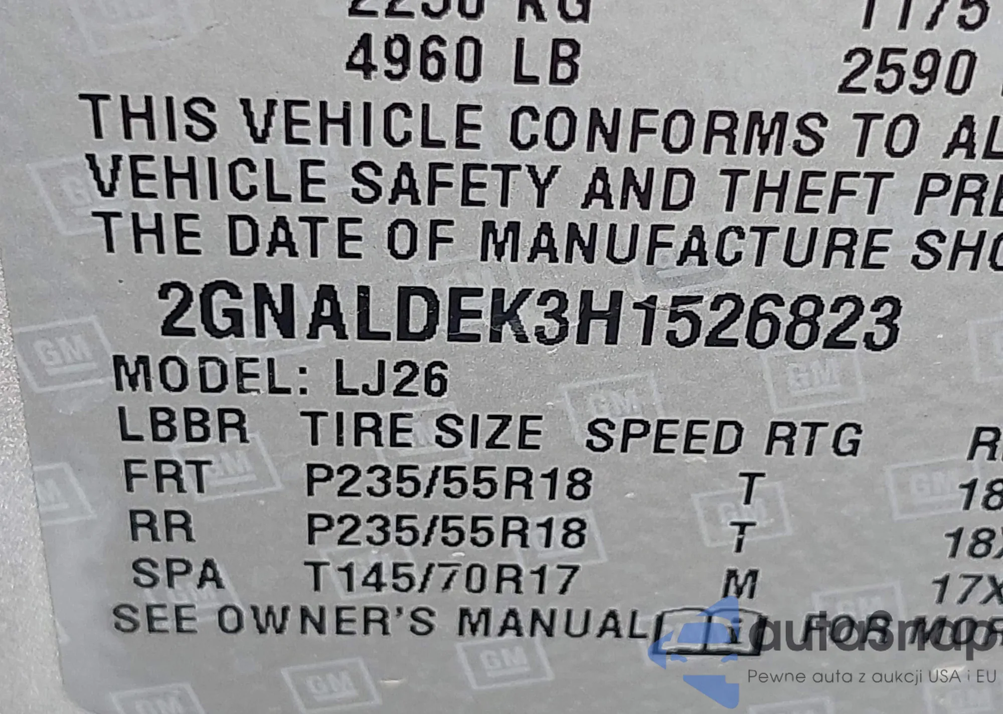 LOT: 43116802 VIN: 2GNALDEK3H1526823