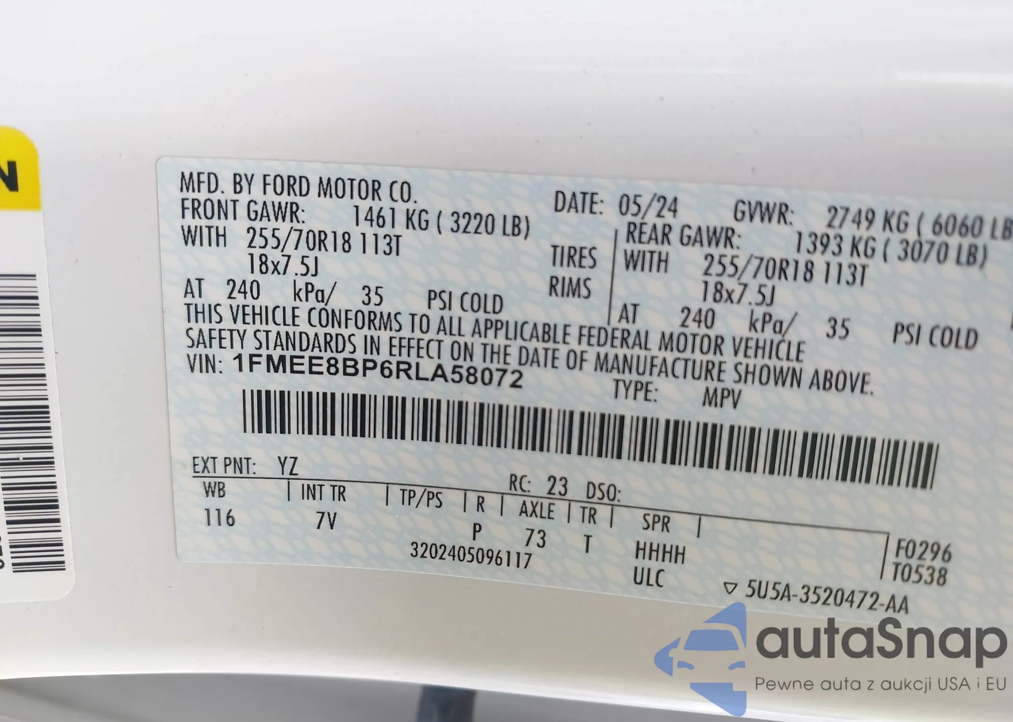 LOT: 43286671 VIN: 1FMEE8BP6RLA58072