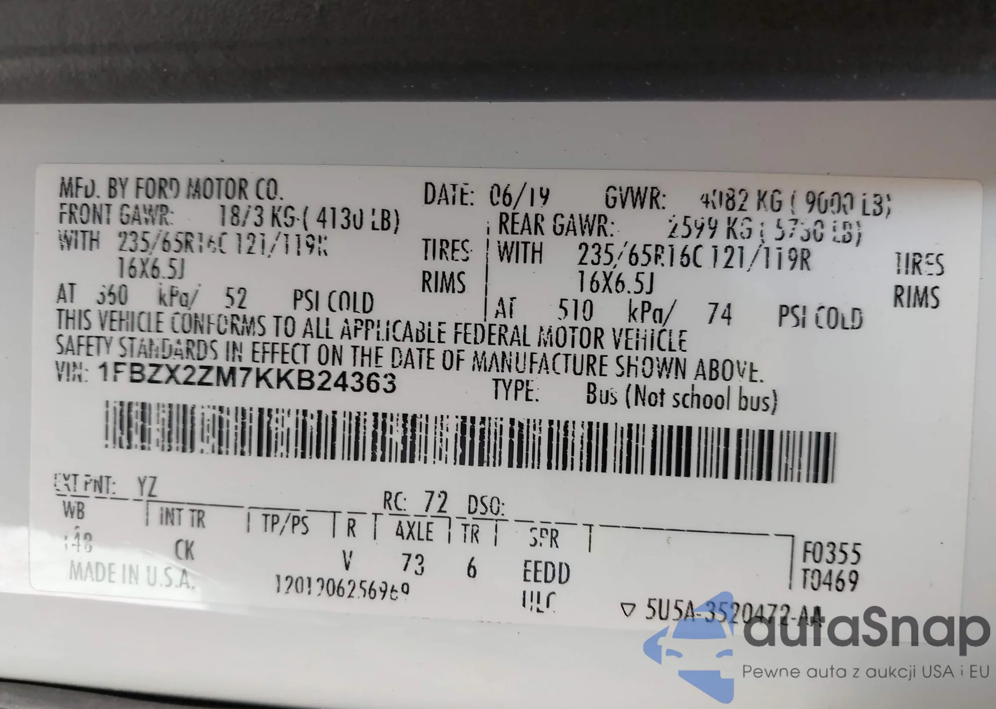 • VIN 1FBZX2ZM7KKB24363