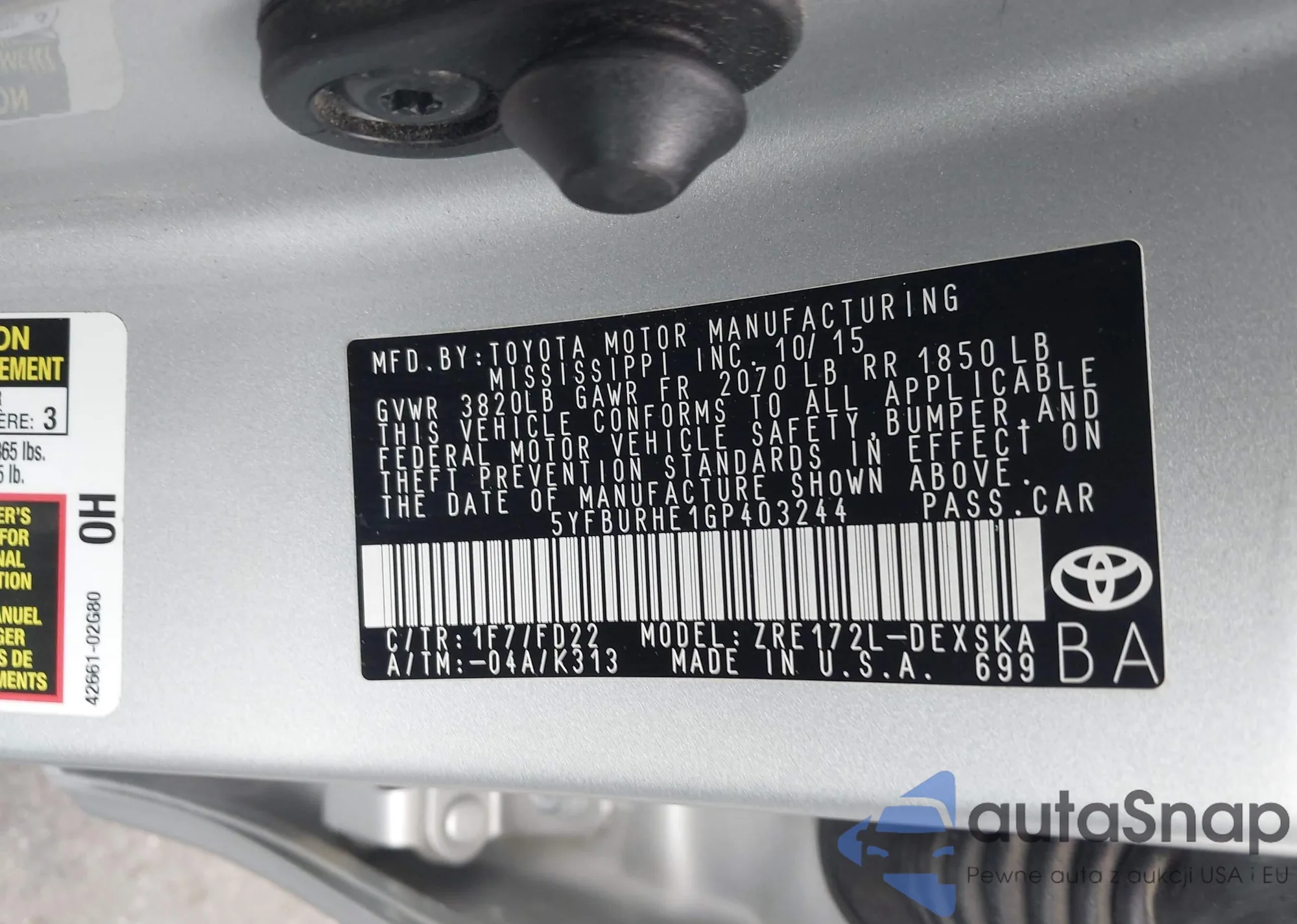 • VIN 5YFBURHE1GP403244