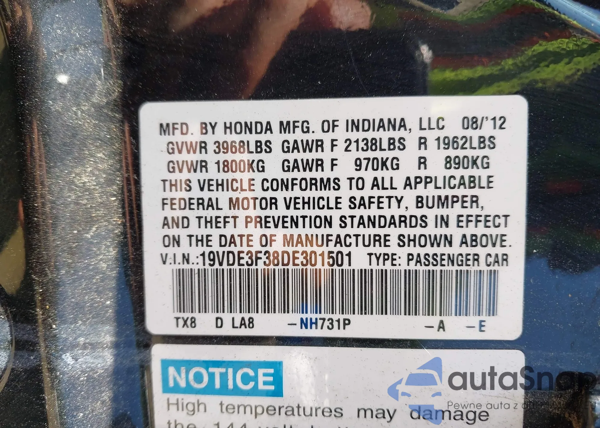 • VIN 19VDE3F38DE301501