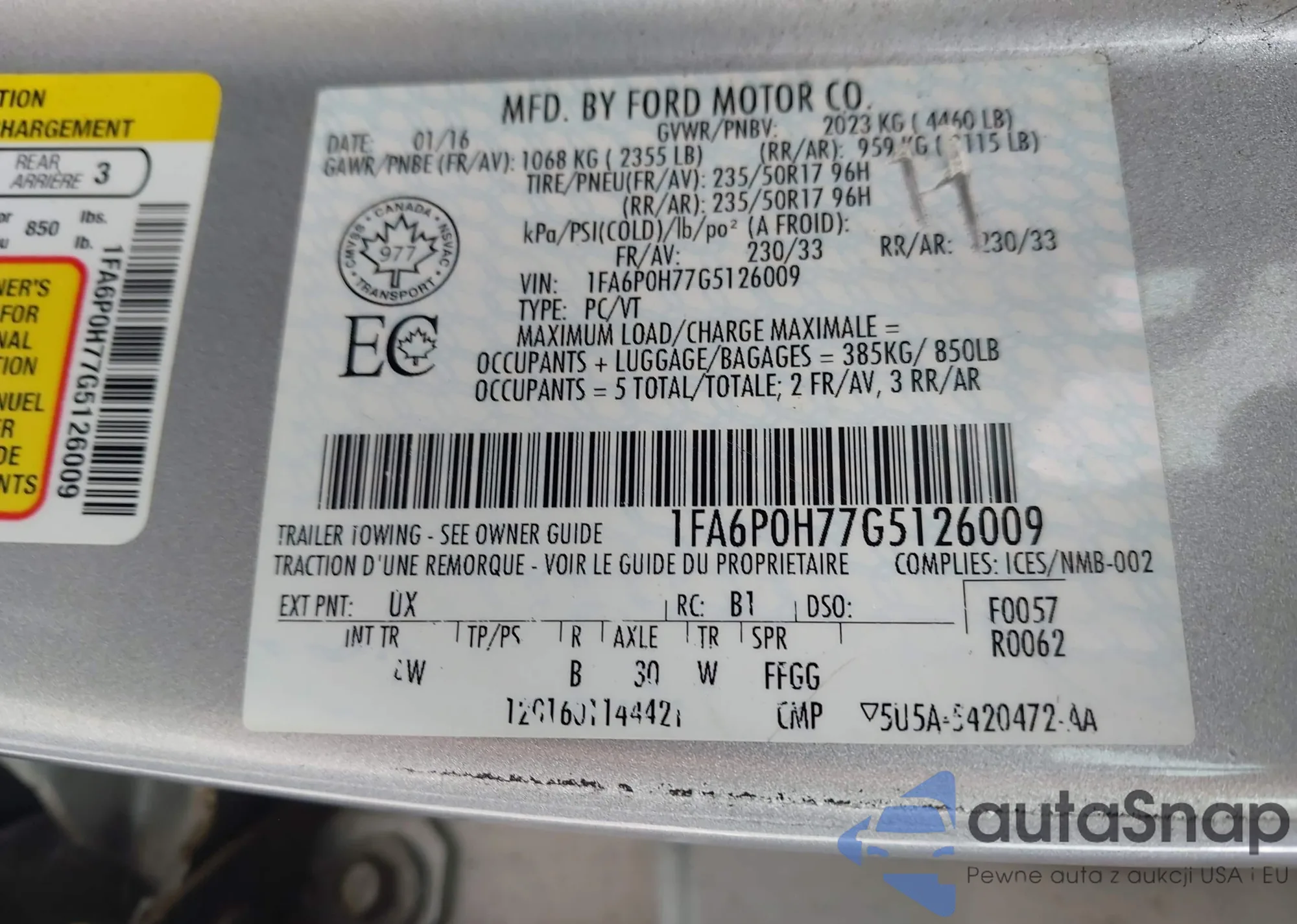 • VIN 1FA6P0H77G5126009