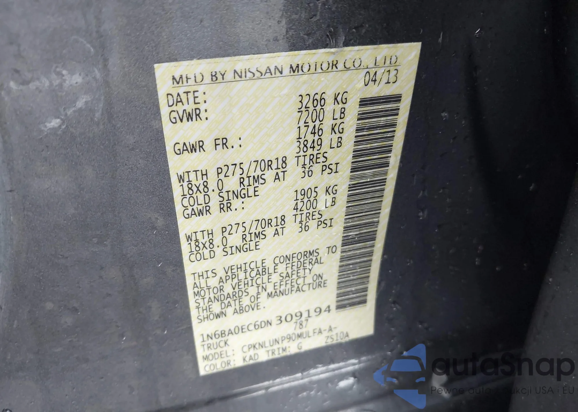 • VIN 1N6BA0EC6DN309194