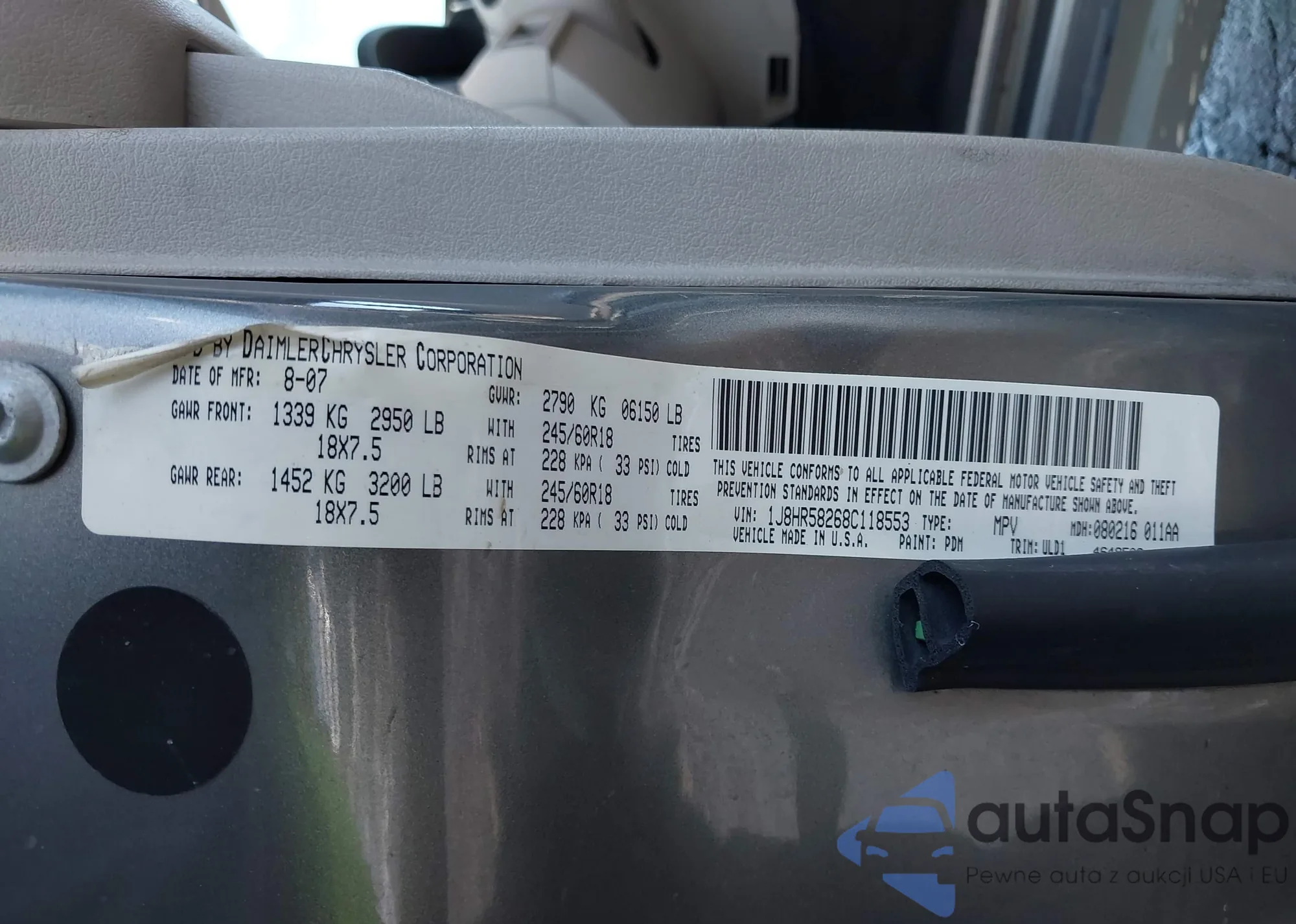 LOT: 43062469 VIN: 1J8HR58268C118553