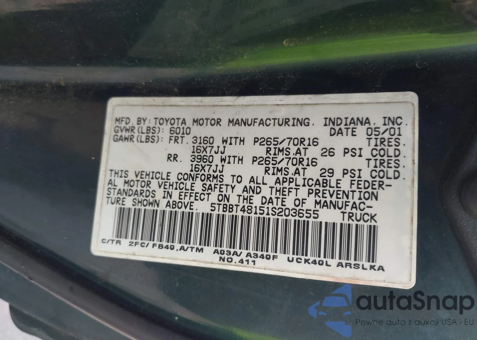 • VIN 5TBBT48151S203655