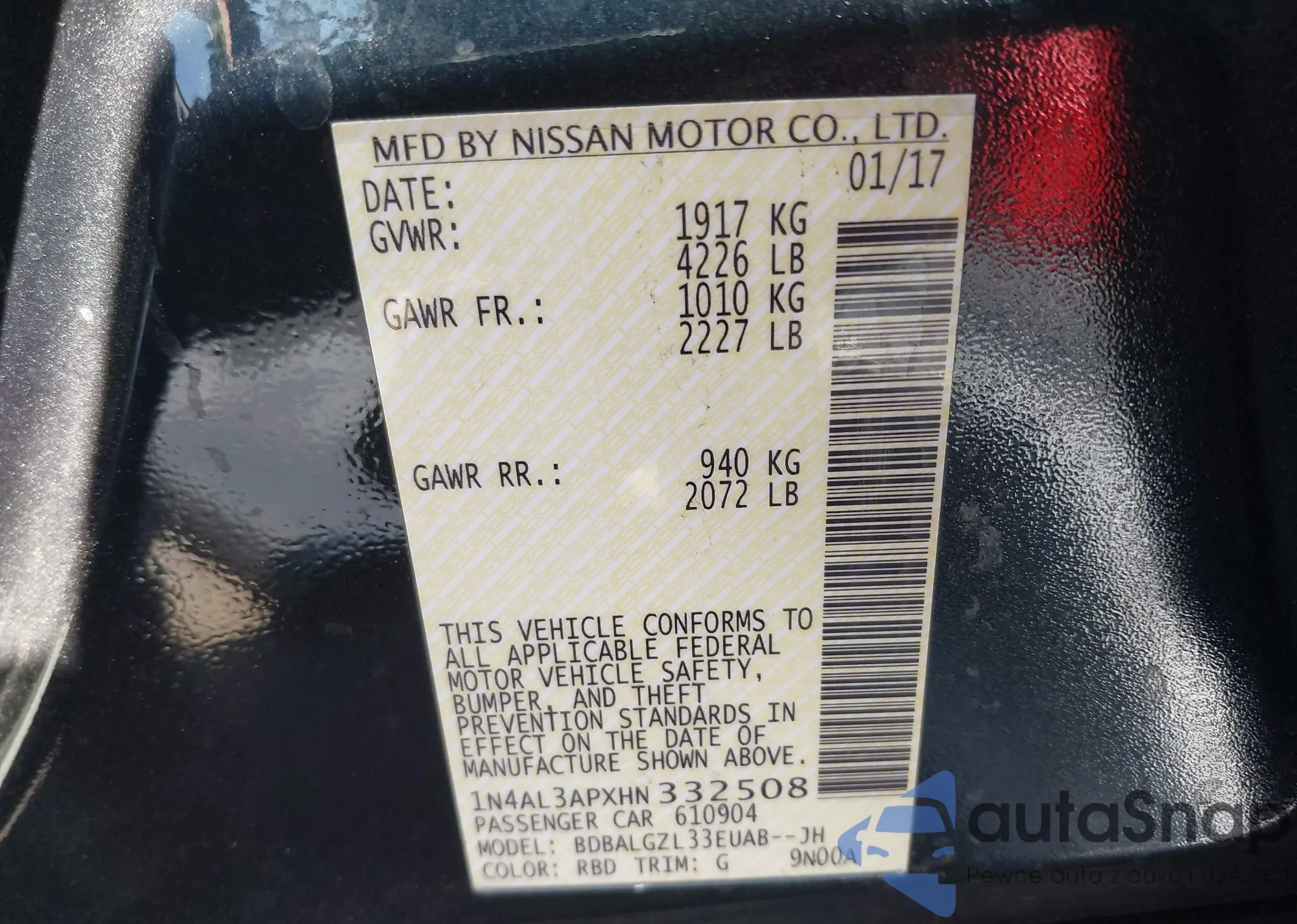 • VIN 1N4BL4DV5RN371075