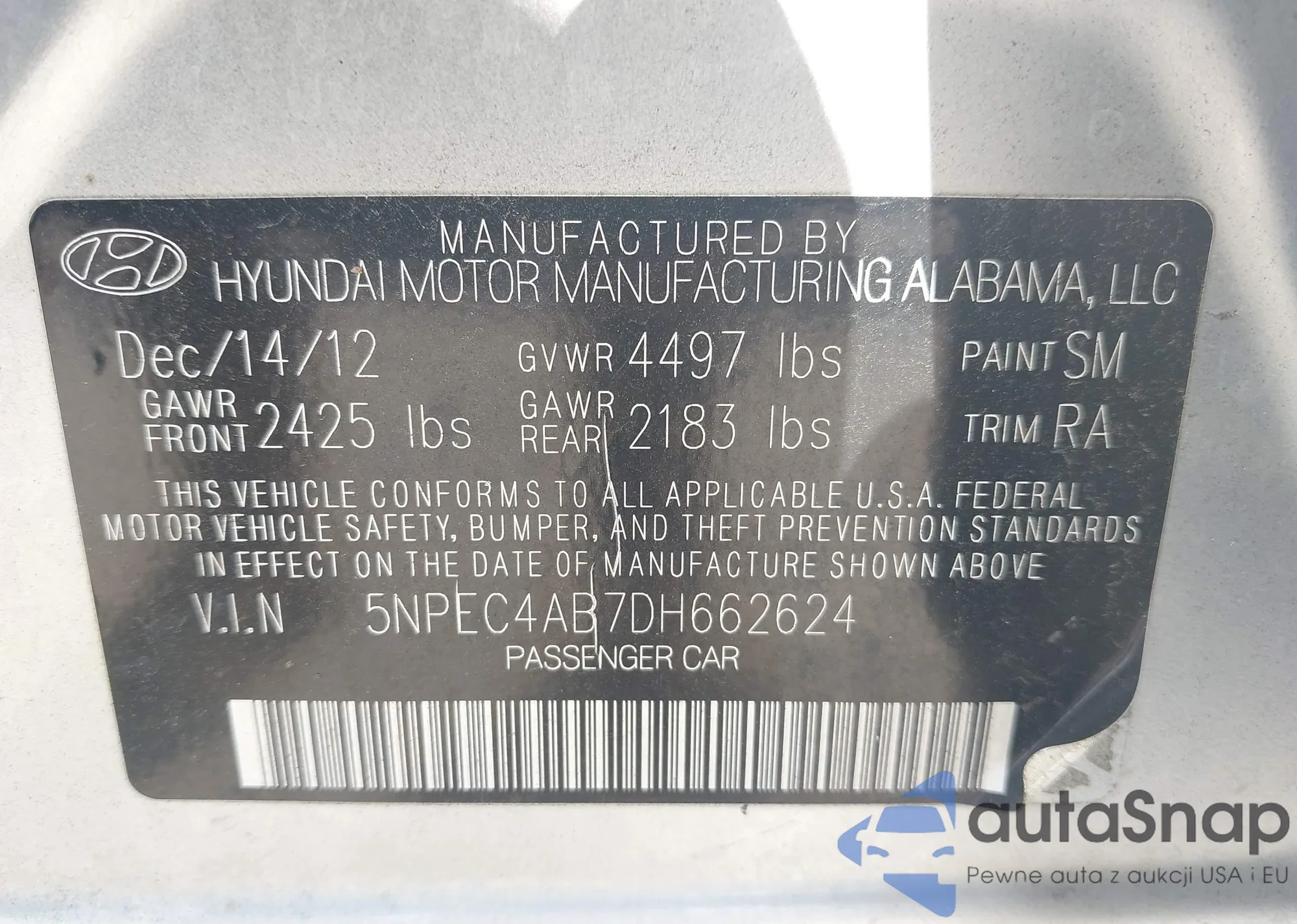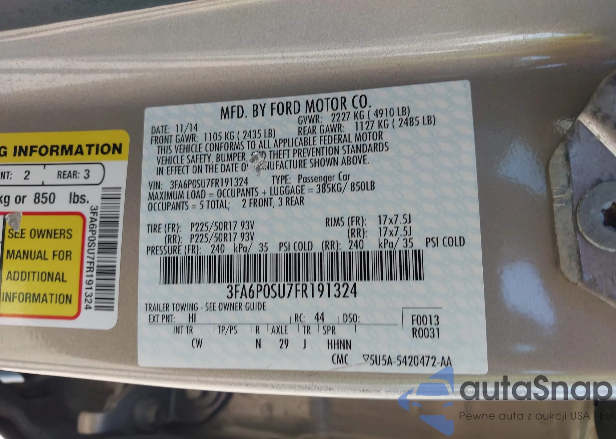 • VIN 1N4BL4DW6SN324815