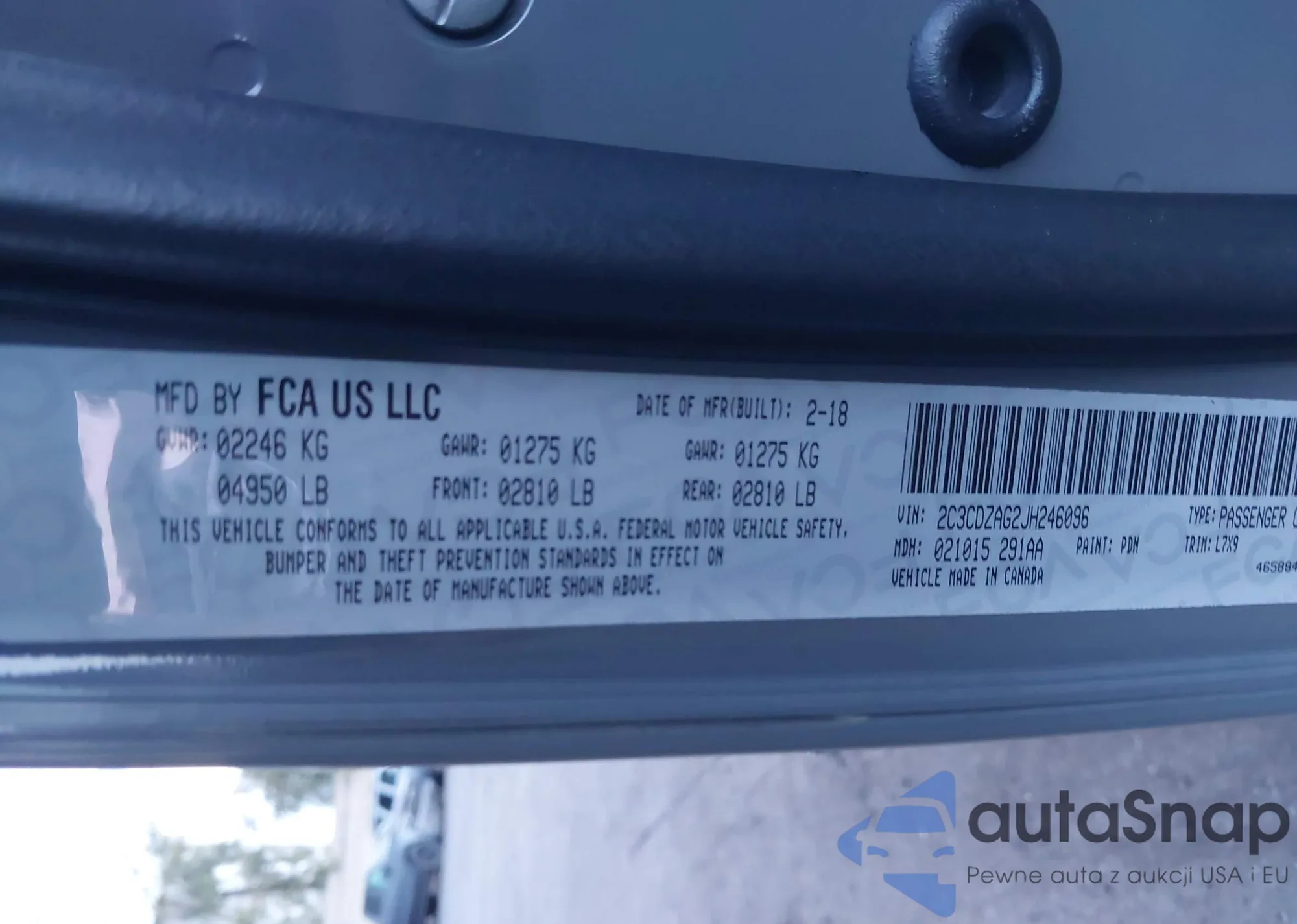 • VIN 2C3CDZAG2JH246096