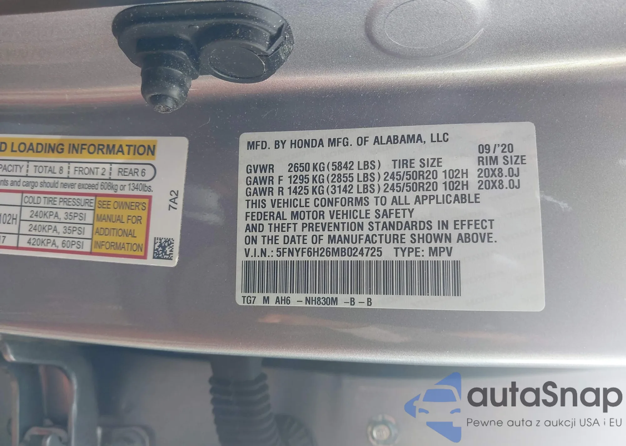 • VIN 5FNYF6H26MB024725
