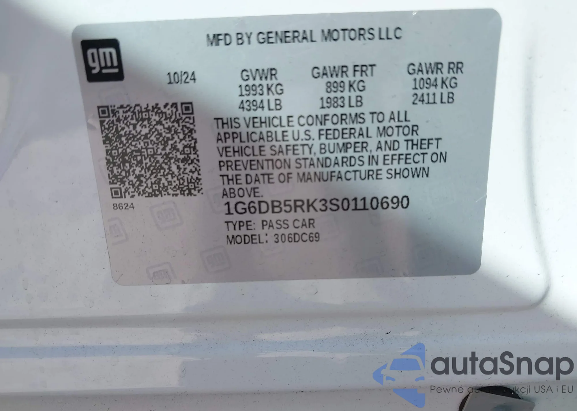 • VIN 1G6DB5RK3S0110690