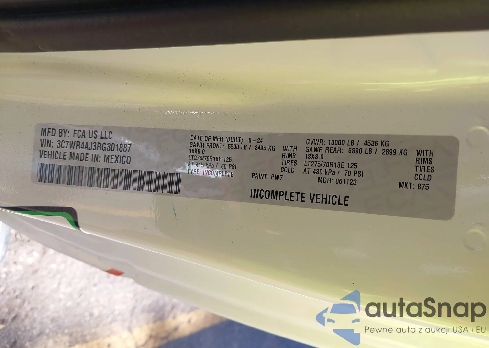 • VIN 3C7WR4AJ3RG301887