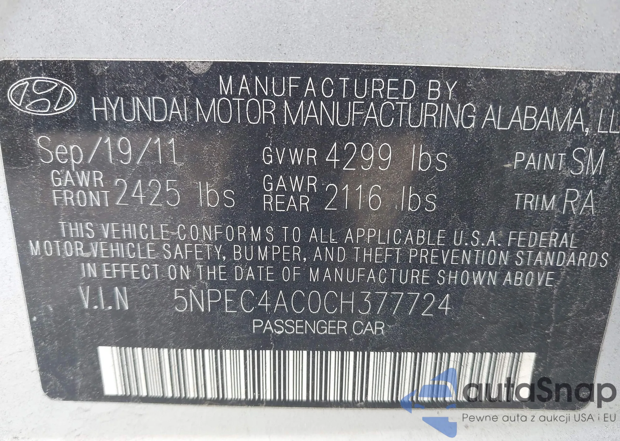• VIN 5NPEC4AC0CH377724