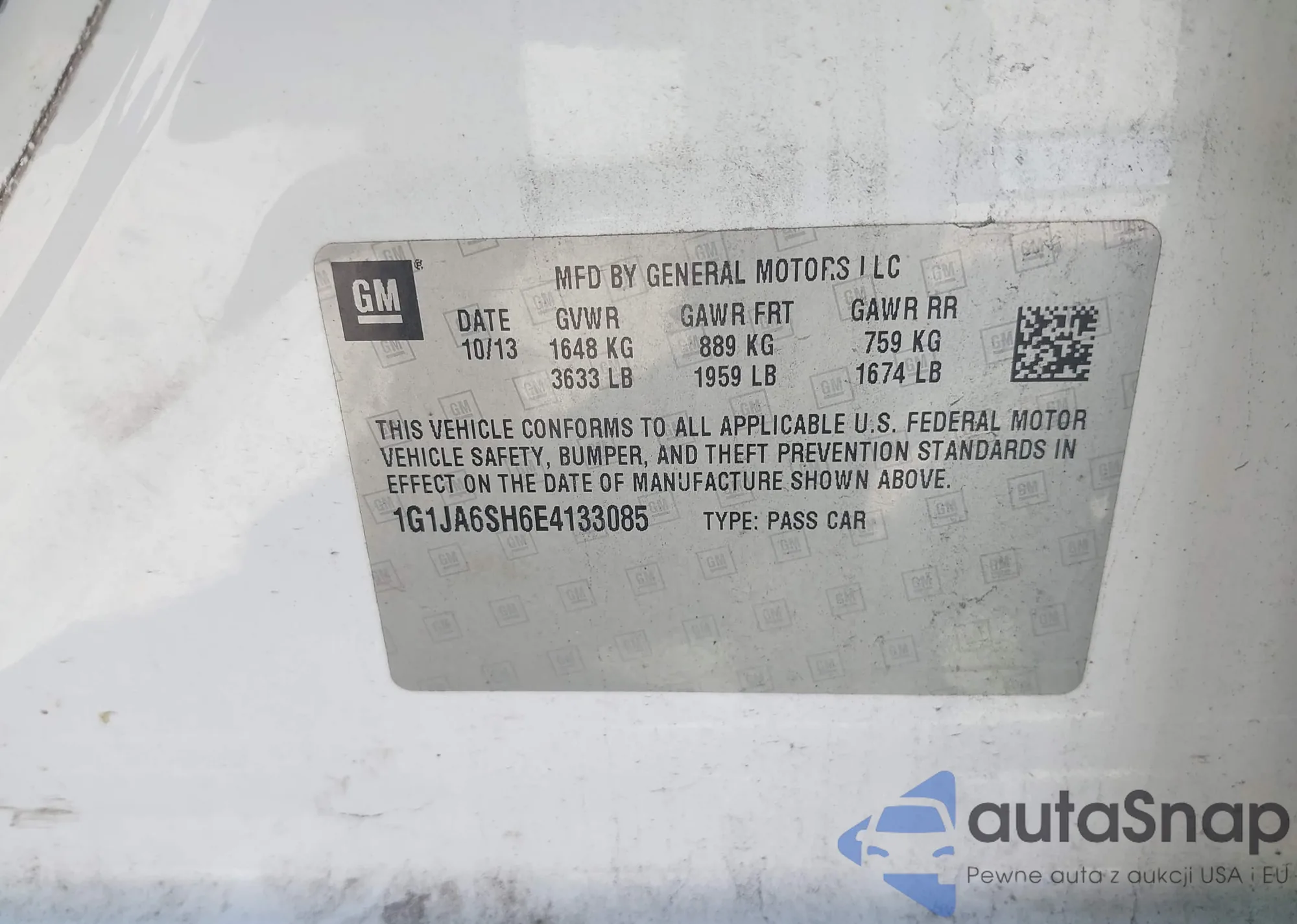 • VIN 1G1JA6SH6E4133085