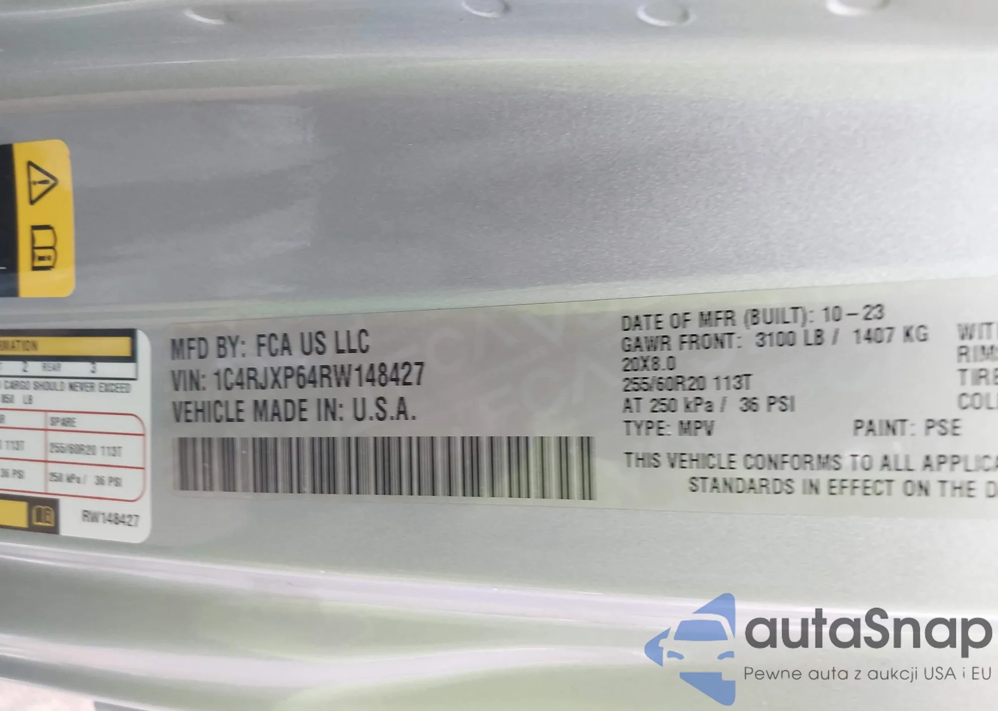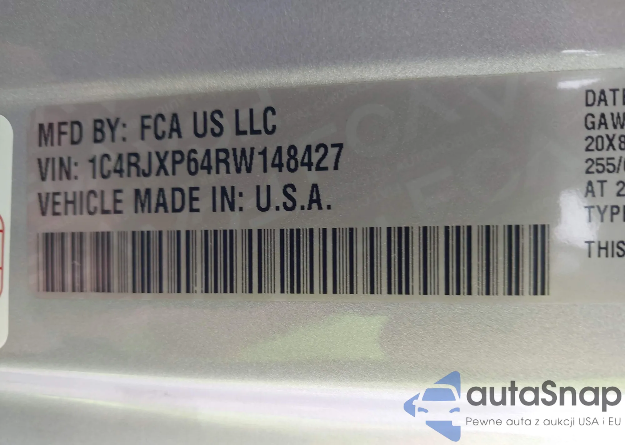 • VIN 1C4RJXP64RW148427