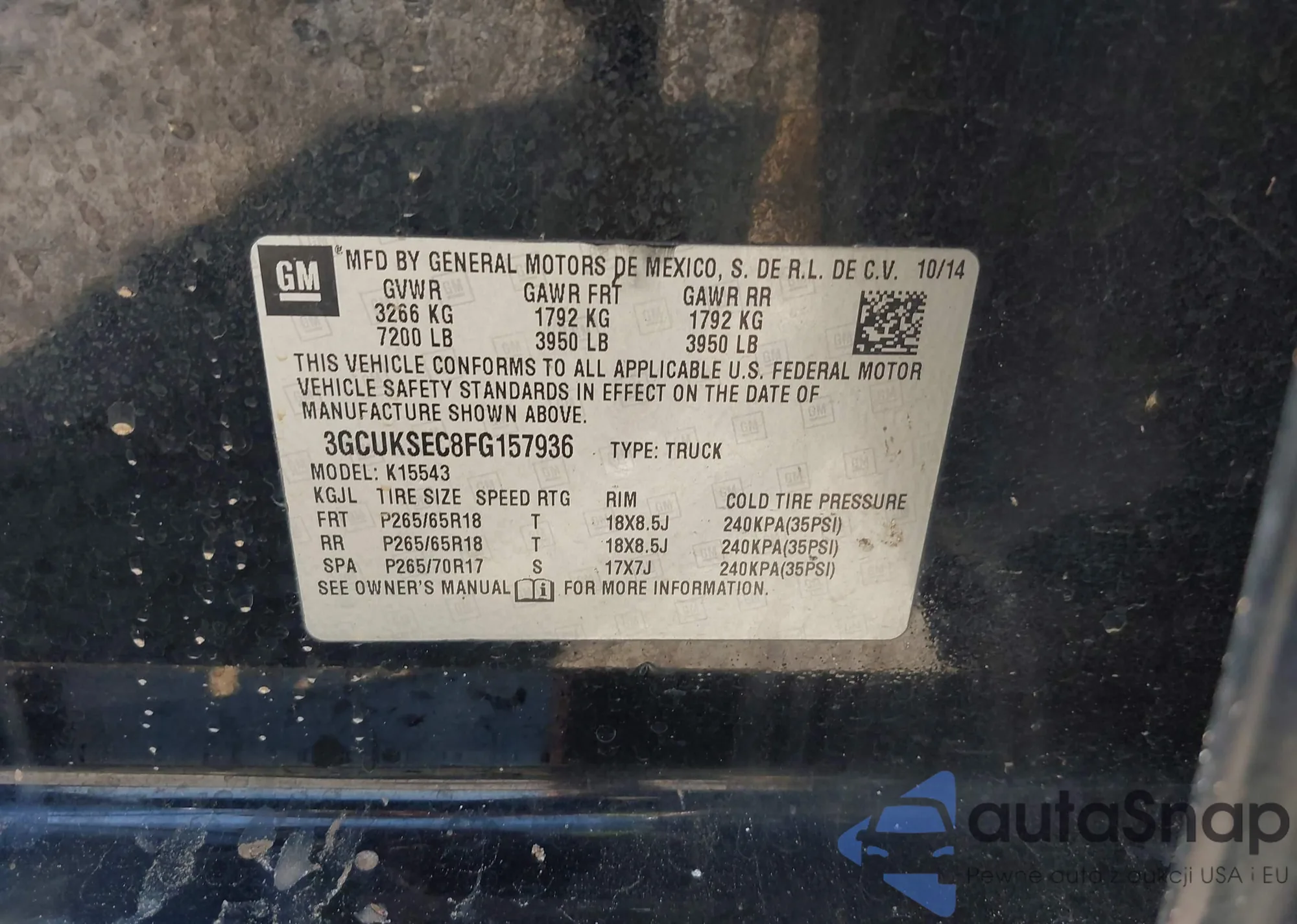 • VIN 3GCUKSEC8FG157936