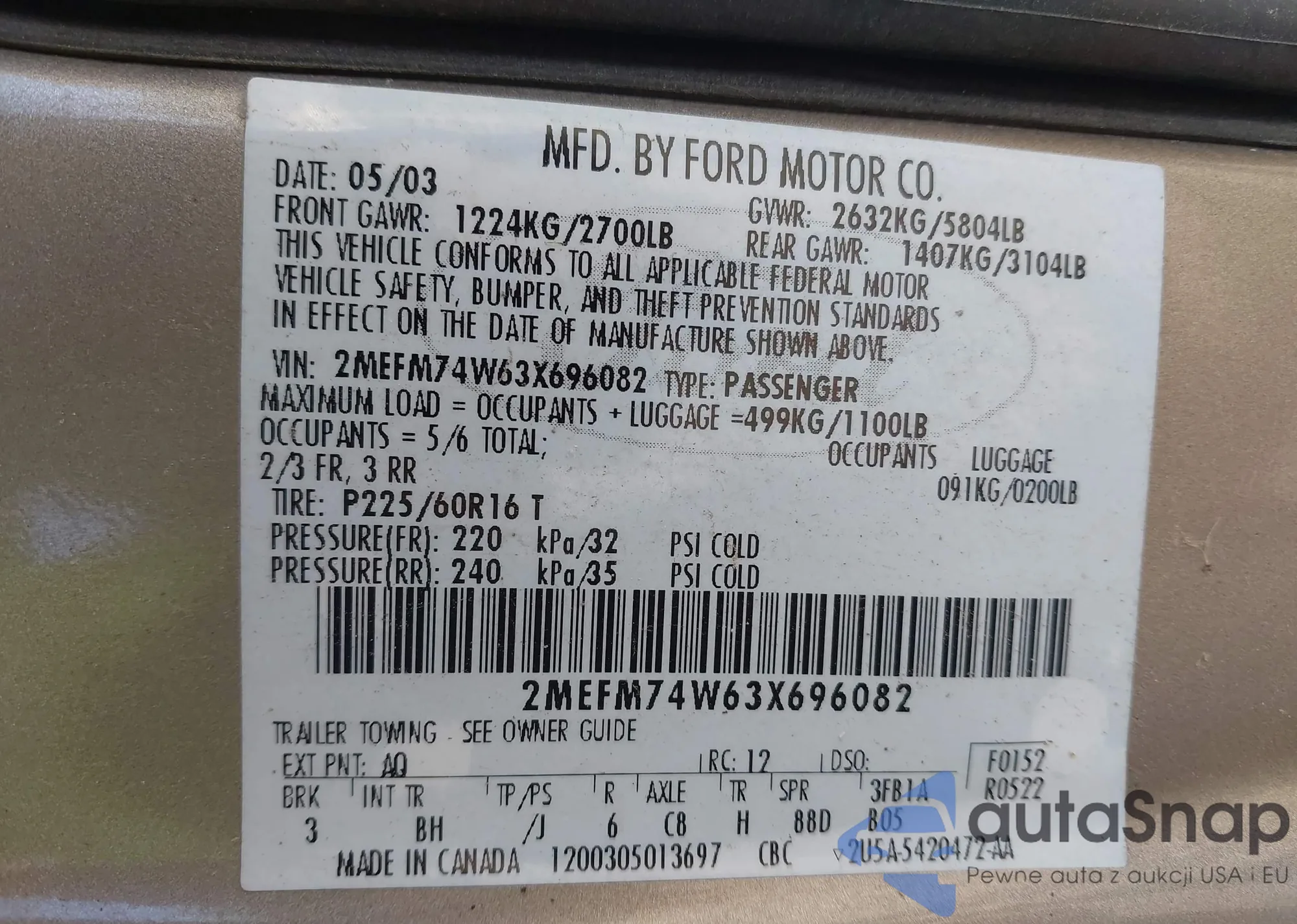 LOT: 43166853 VIN: 5FNYF18505B040692