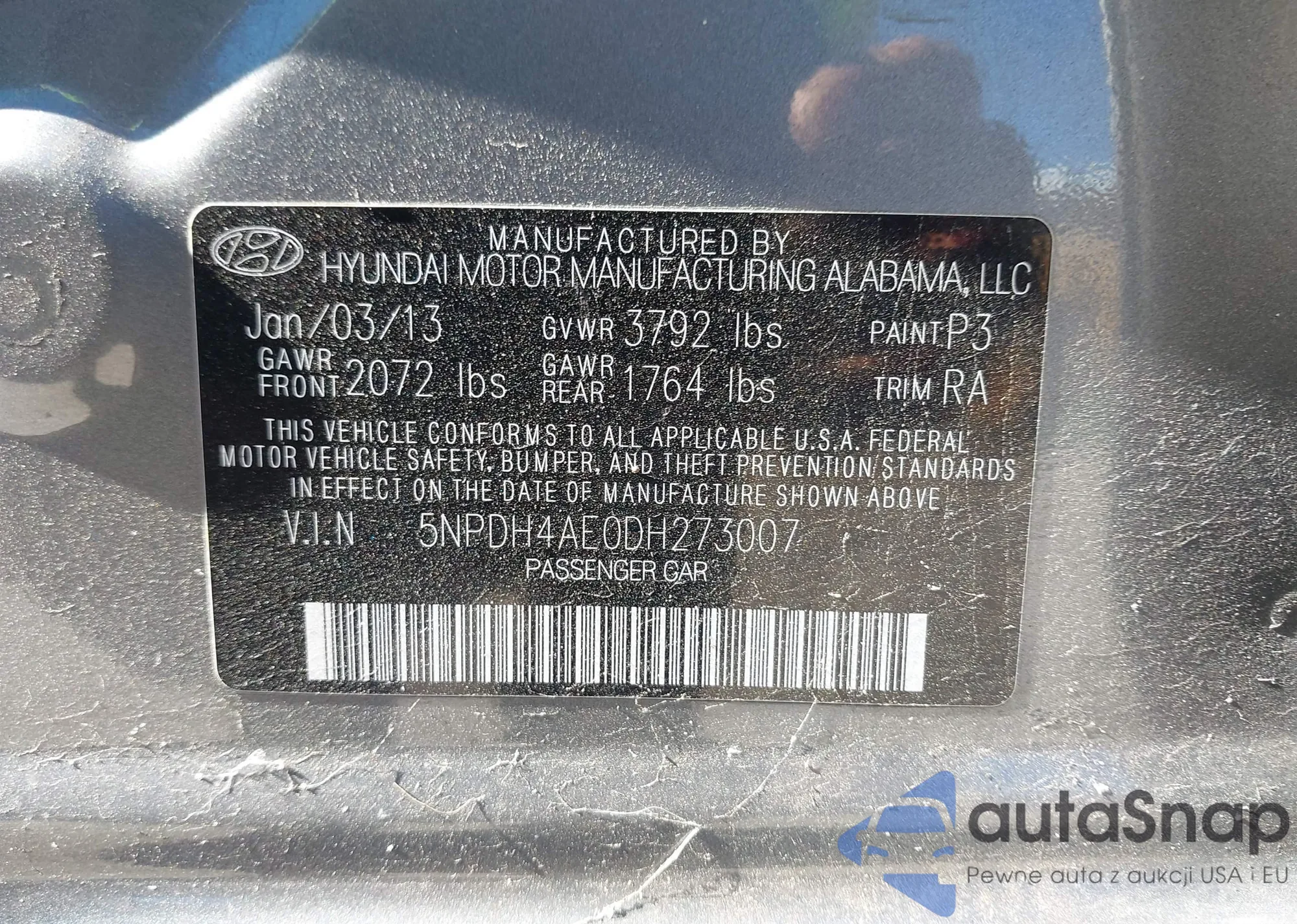 • VIN 5NMJB3AE1PH213401