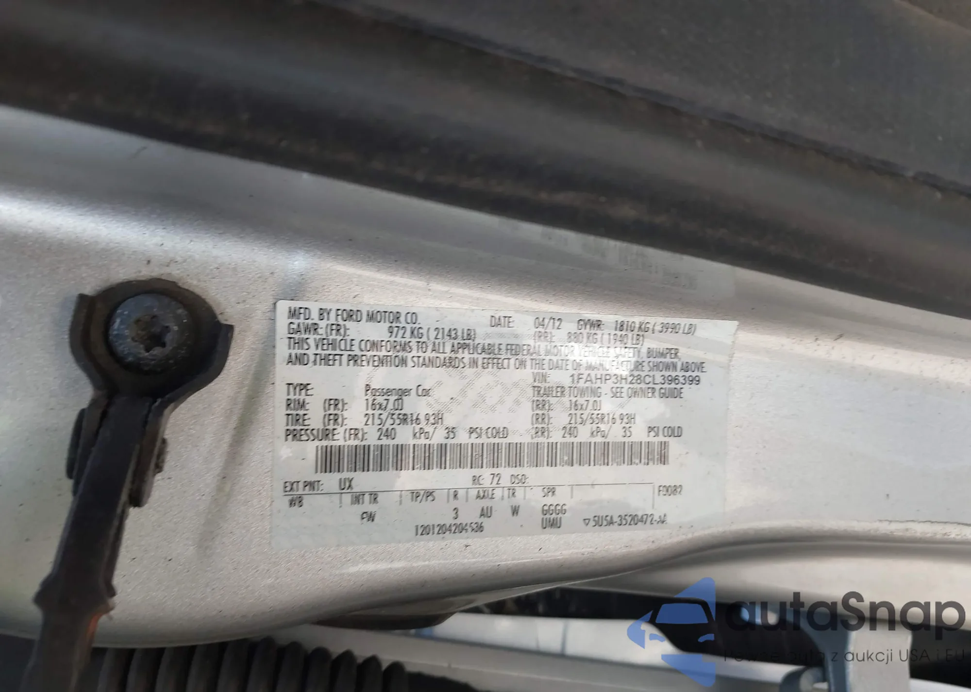 LOT: 43329229 VIN: 1FAHP3H28CL396399