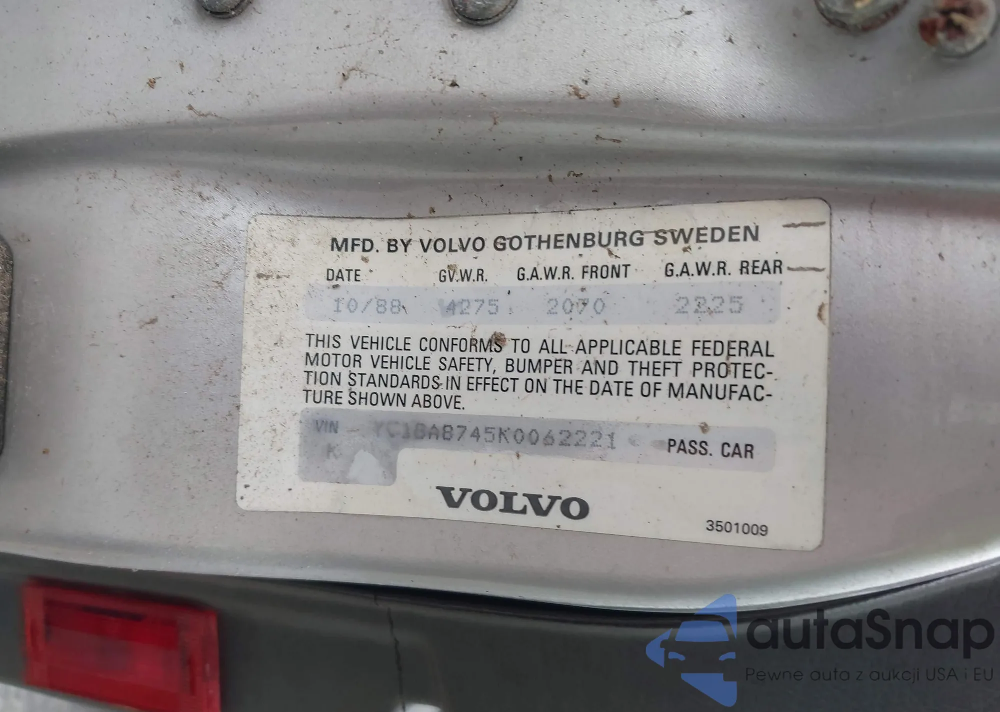 • VIN YV1GA8745K0062221