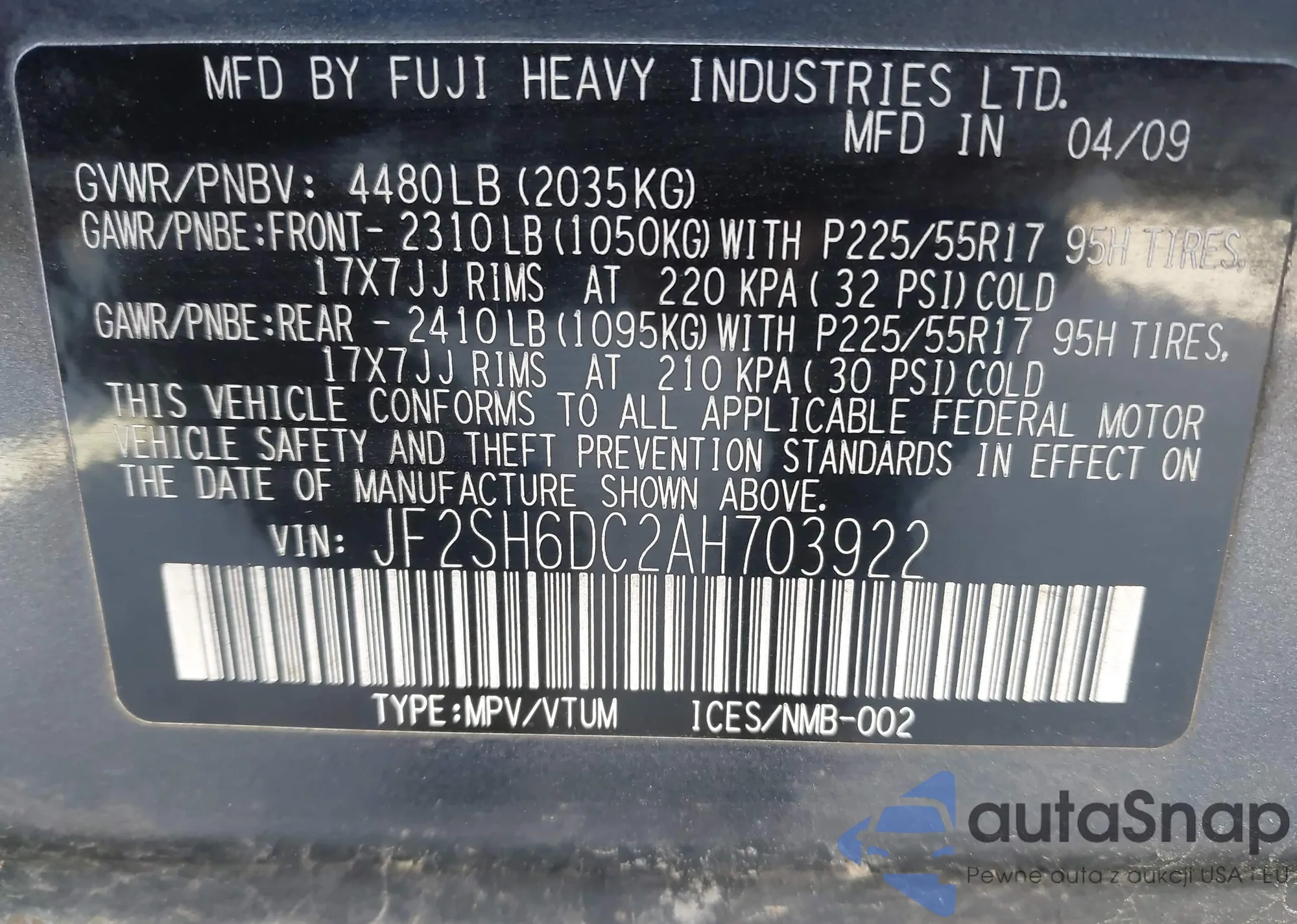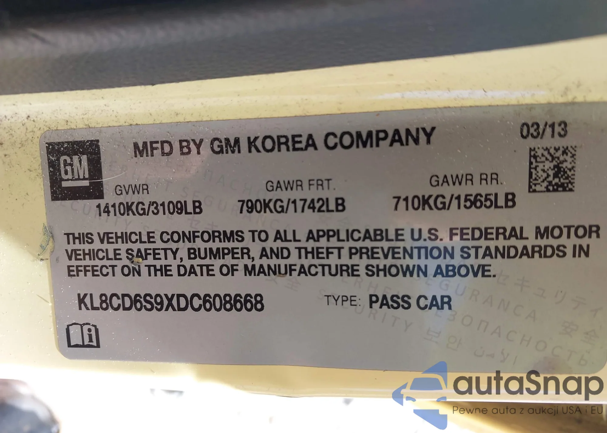 • VIN KL8CD6S9XDC608668