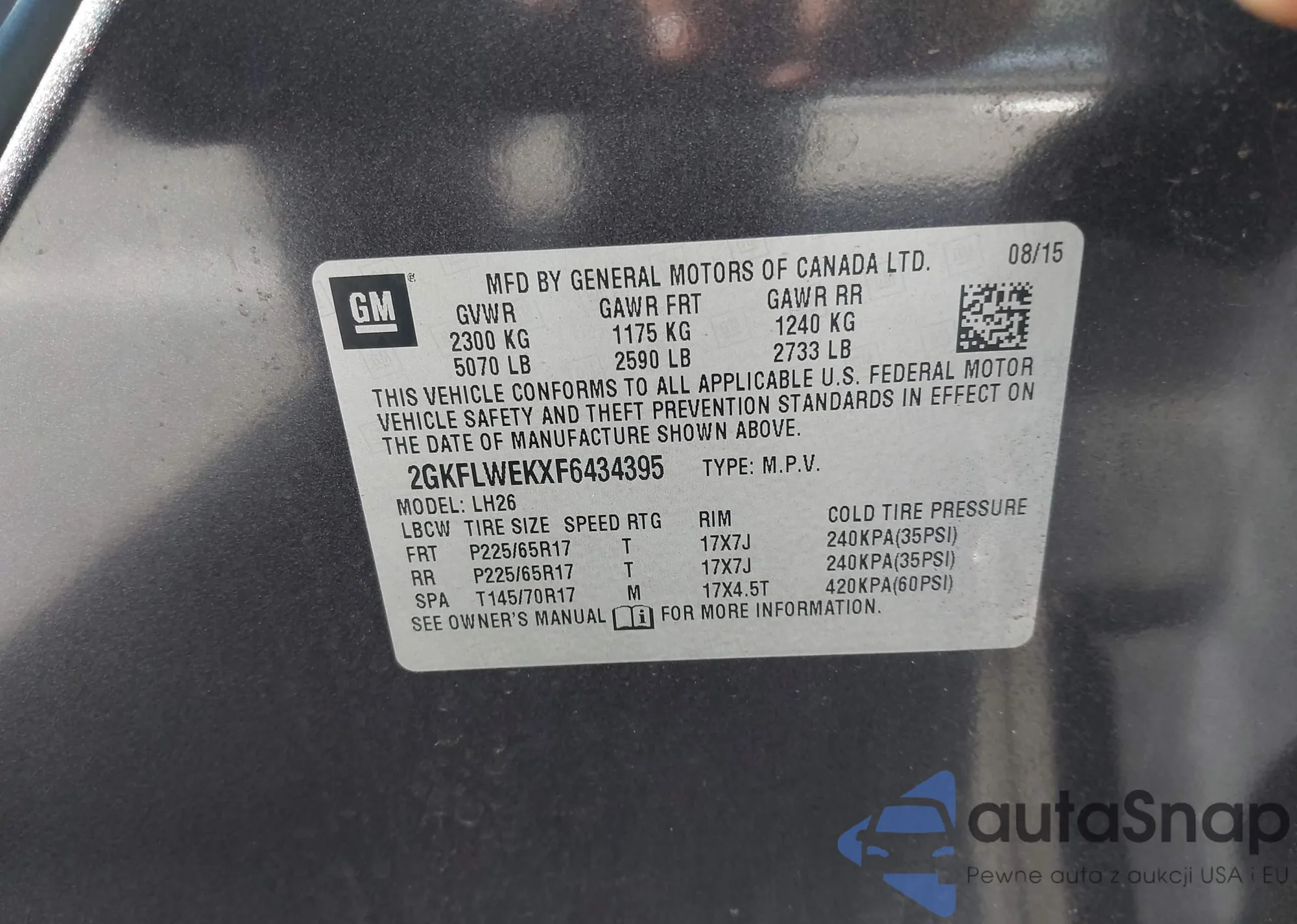 LOT: 43193033 VIN: 2GKFLWEKXF6434395