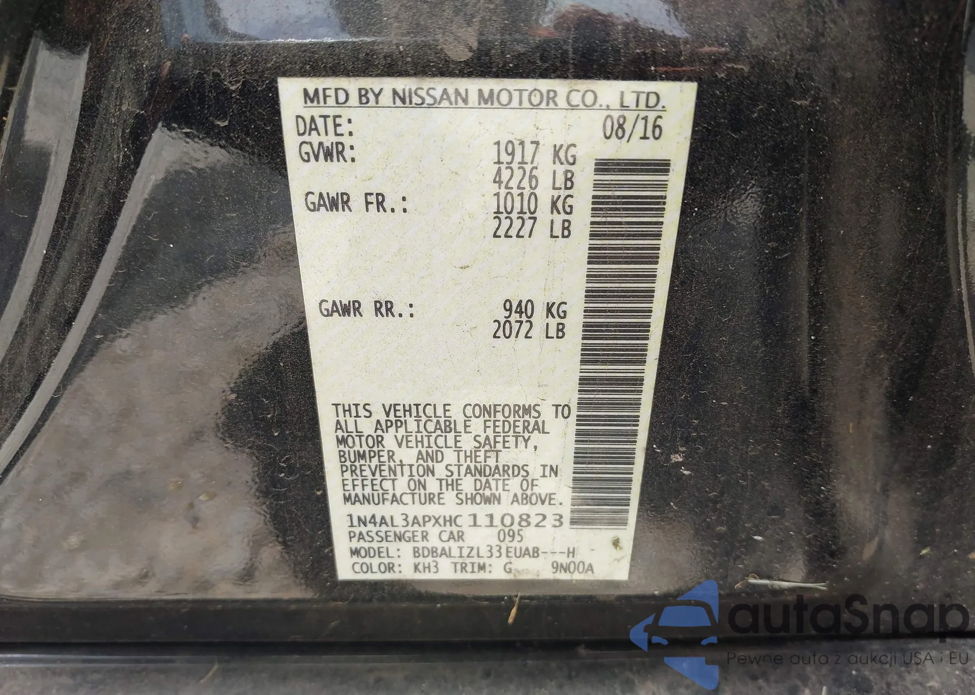 LOT: 42712515 VIN: 1N4AL3APXHC110823