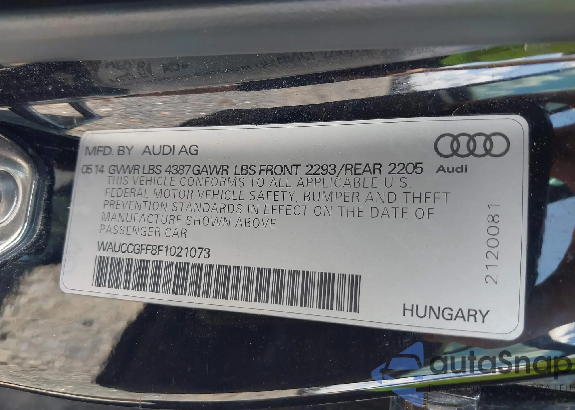 • VIN WAUCCGFF8F1021073