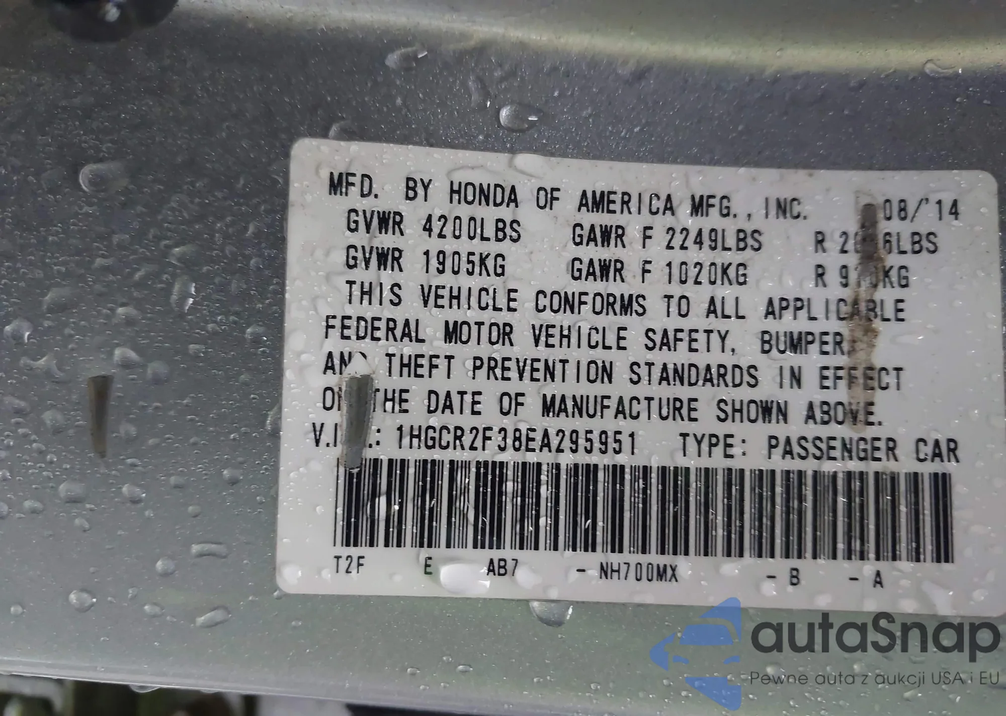 LOT: 42953908 VIN: WAUANAF44HN069968