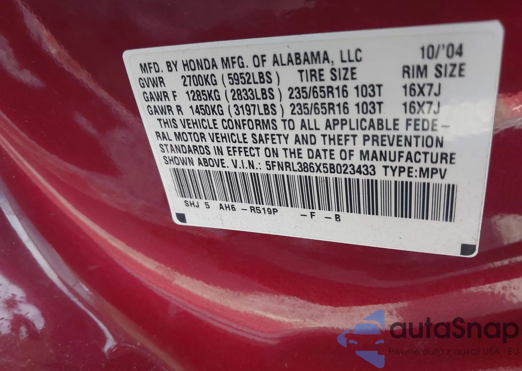 • VIN 2C3JA43R35H675853