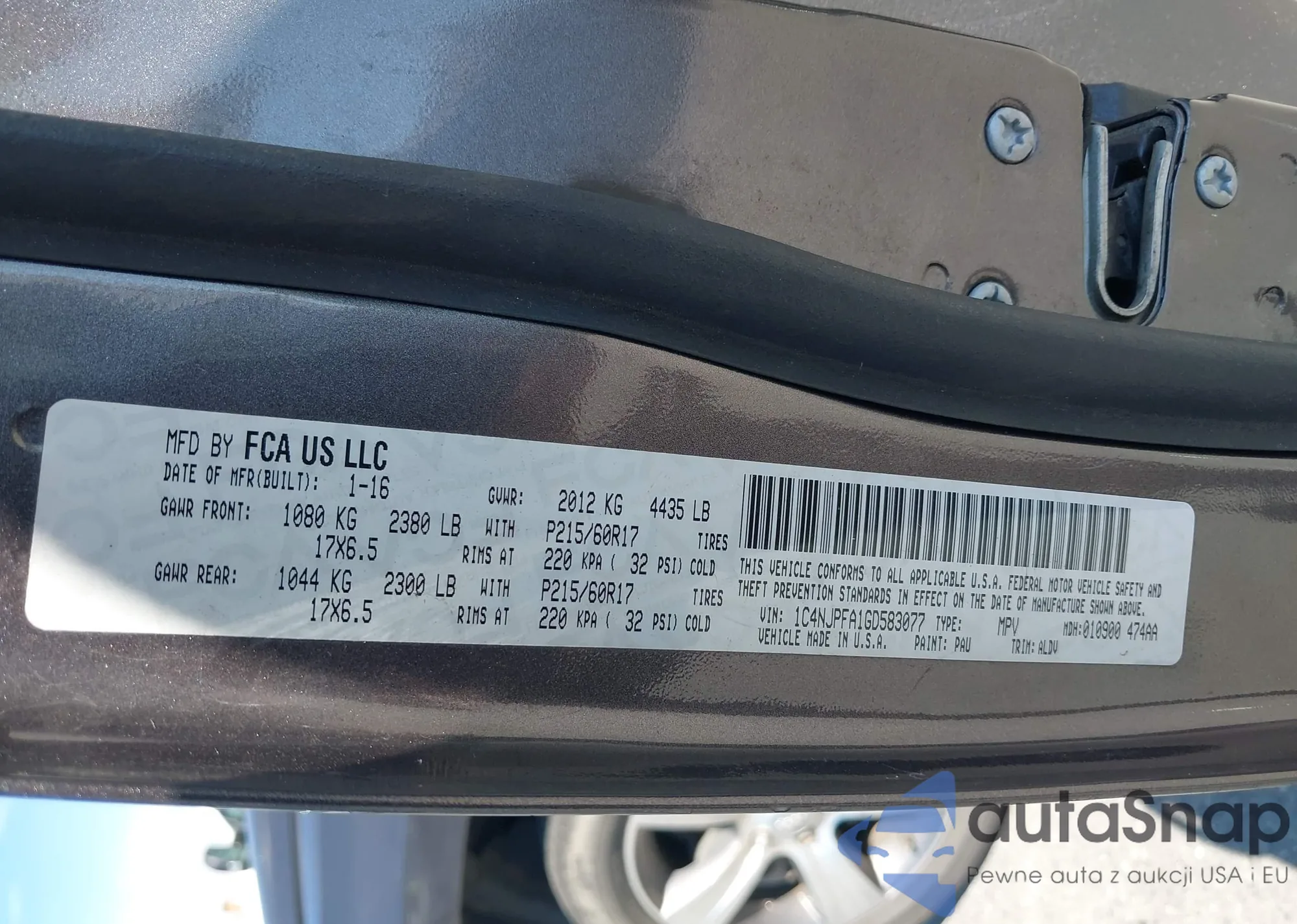 LOT: 43257924 VIN: 1C4NJPFA1GD583077