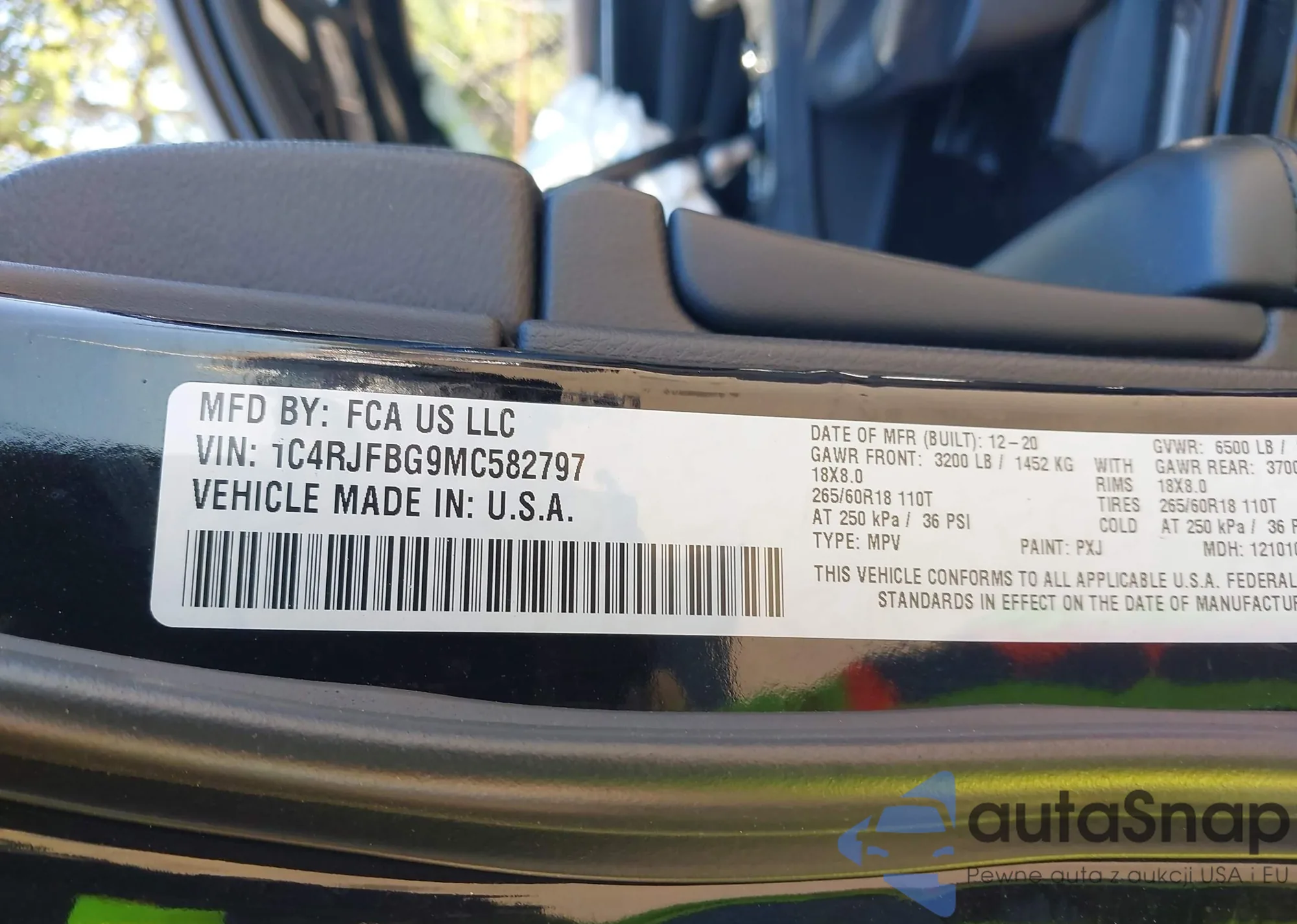 • VIN 1C4RJFBG9MC582797